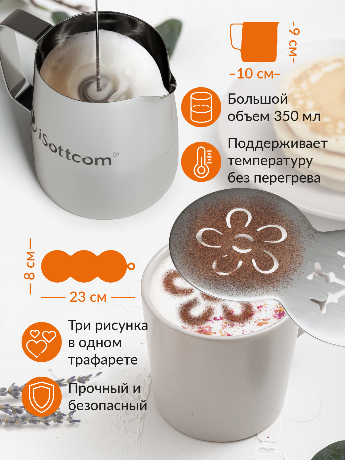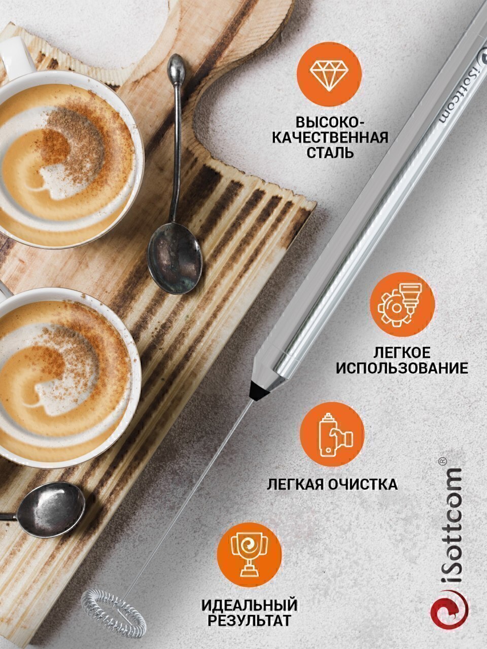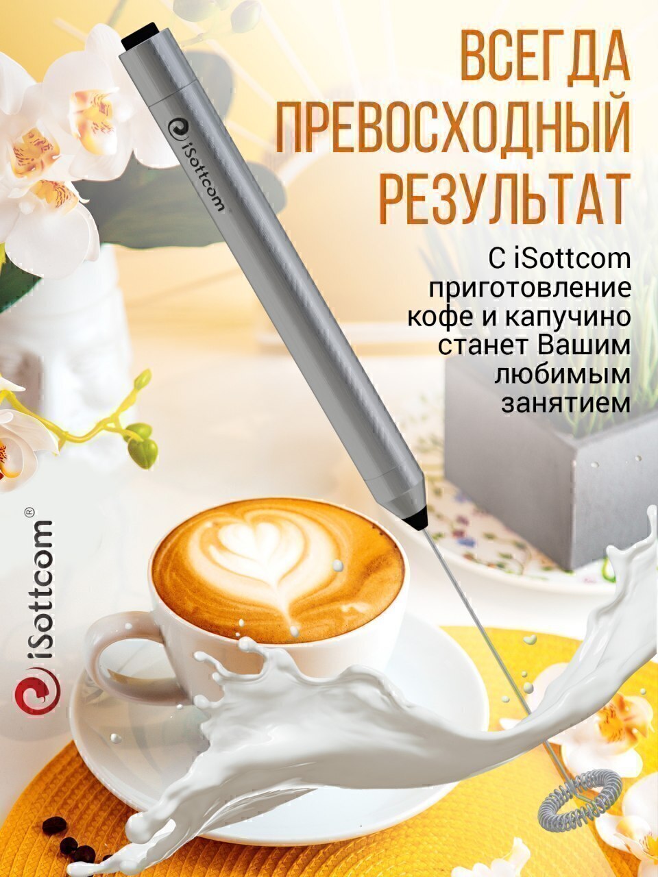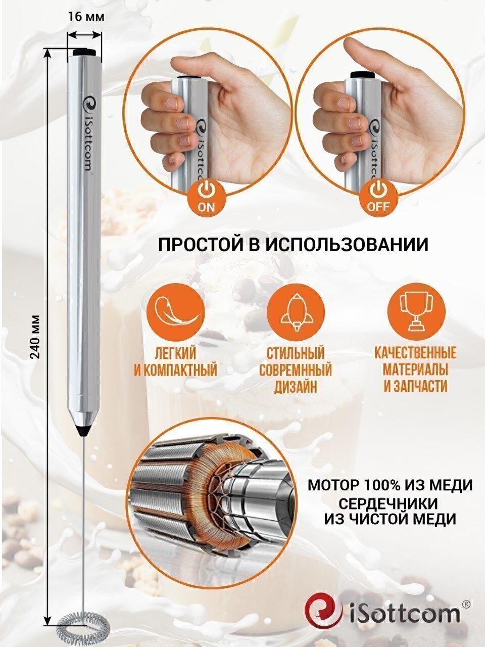 Капучинатор iSottcom, вспениватель молока электрический металлический портативный ручной