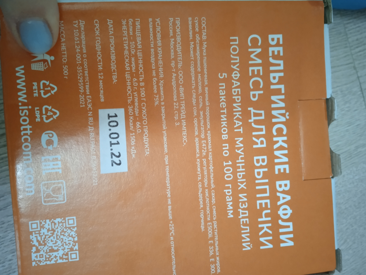 Смесь для выпечки бельгийских вафель готовая сухая 5 порционных пакетиков в индивидуальной упаковке