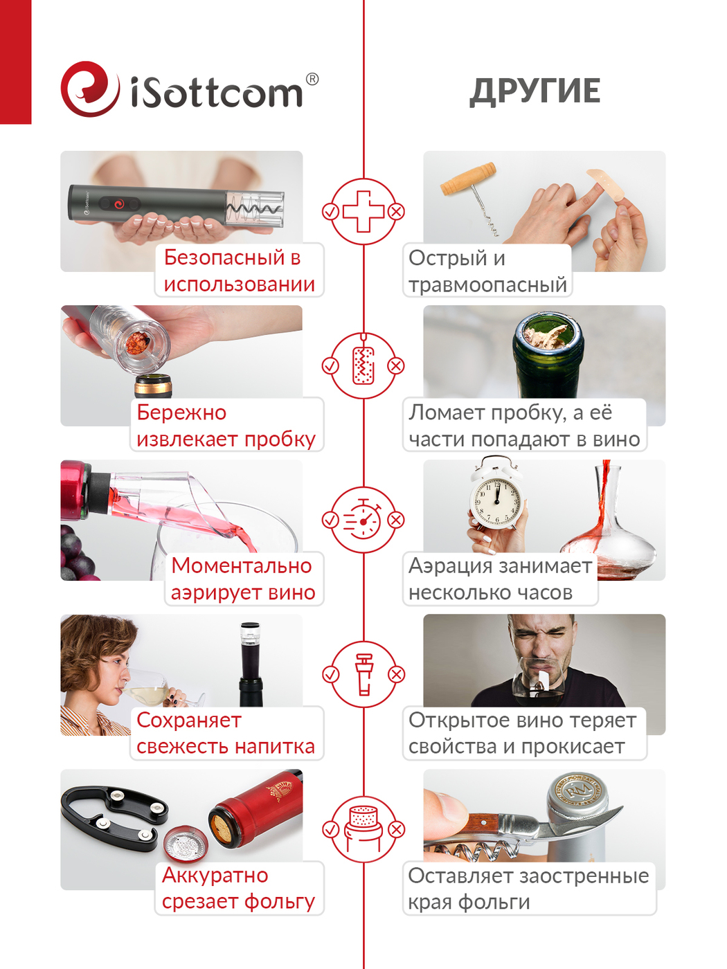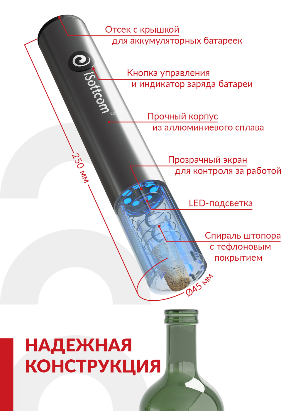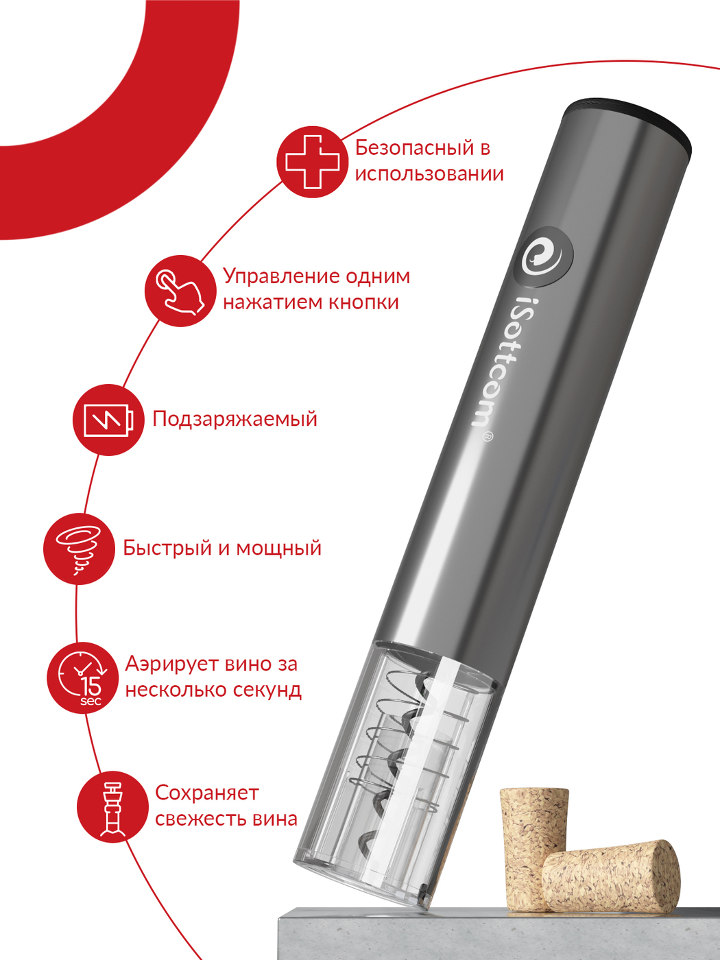 Электрический штопор iSottcom Gran Reserva, серый металлик, темно-серый