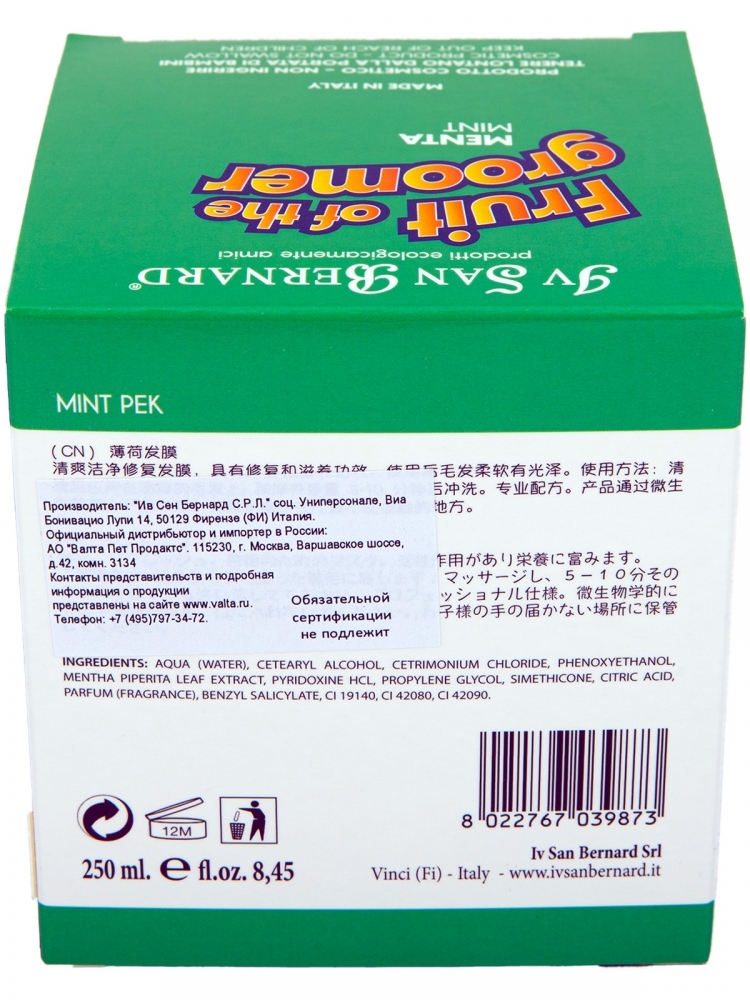 ISB Fruit of the Grommer Mint Восстанавливающая маска для любого типа шерсти с витамином В6 250 мл