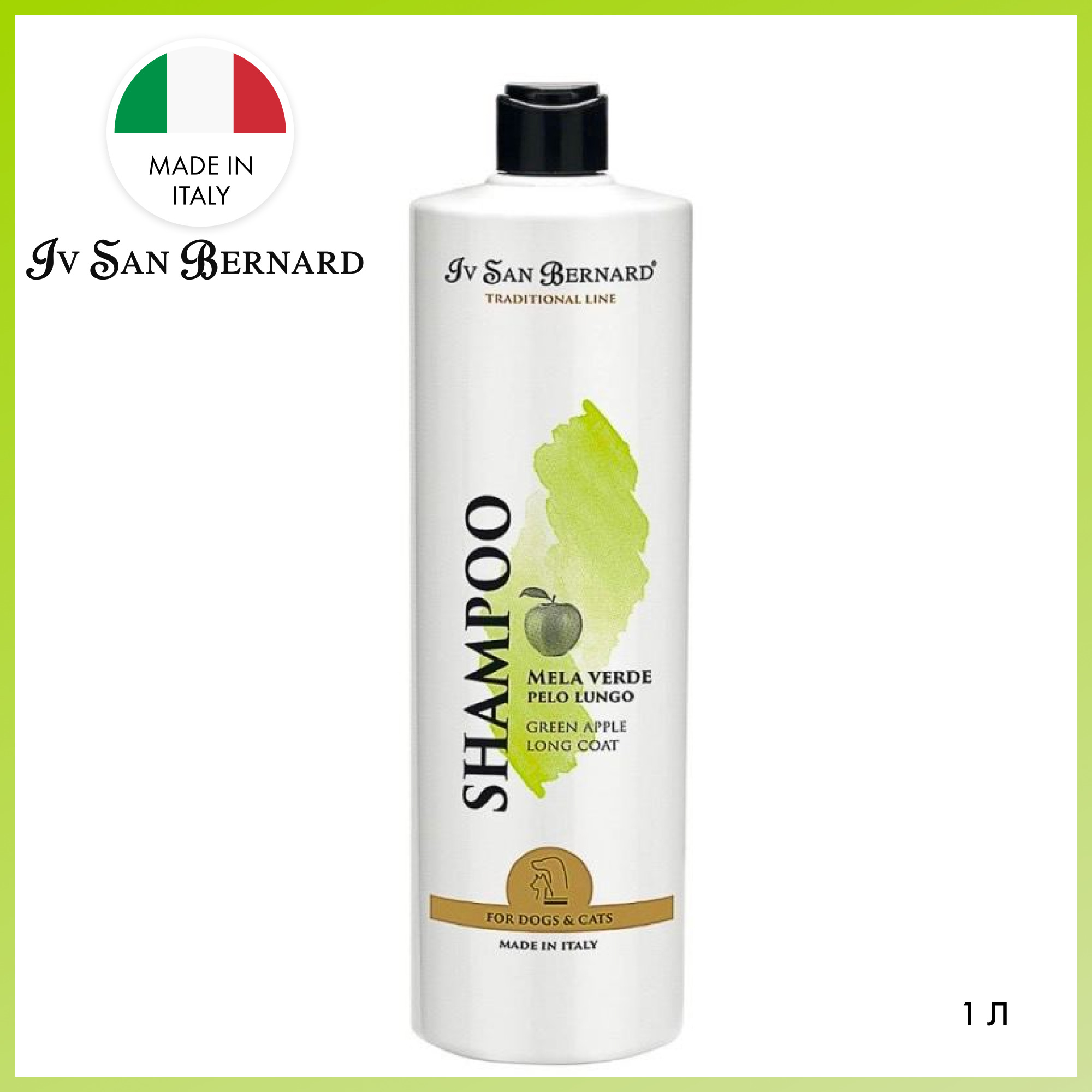 Шампунь для кошек и собак Iv San Bernard mela verde для длинной шерсти 1л с31730