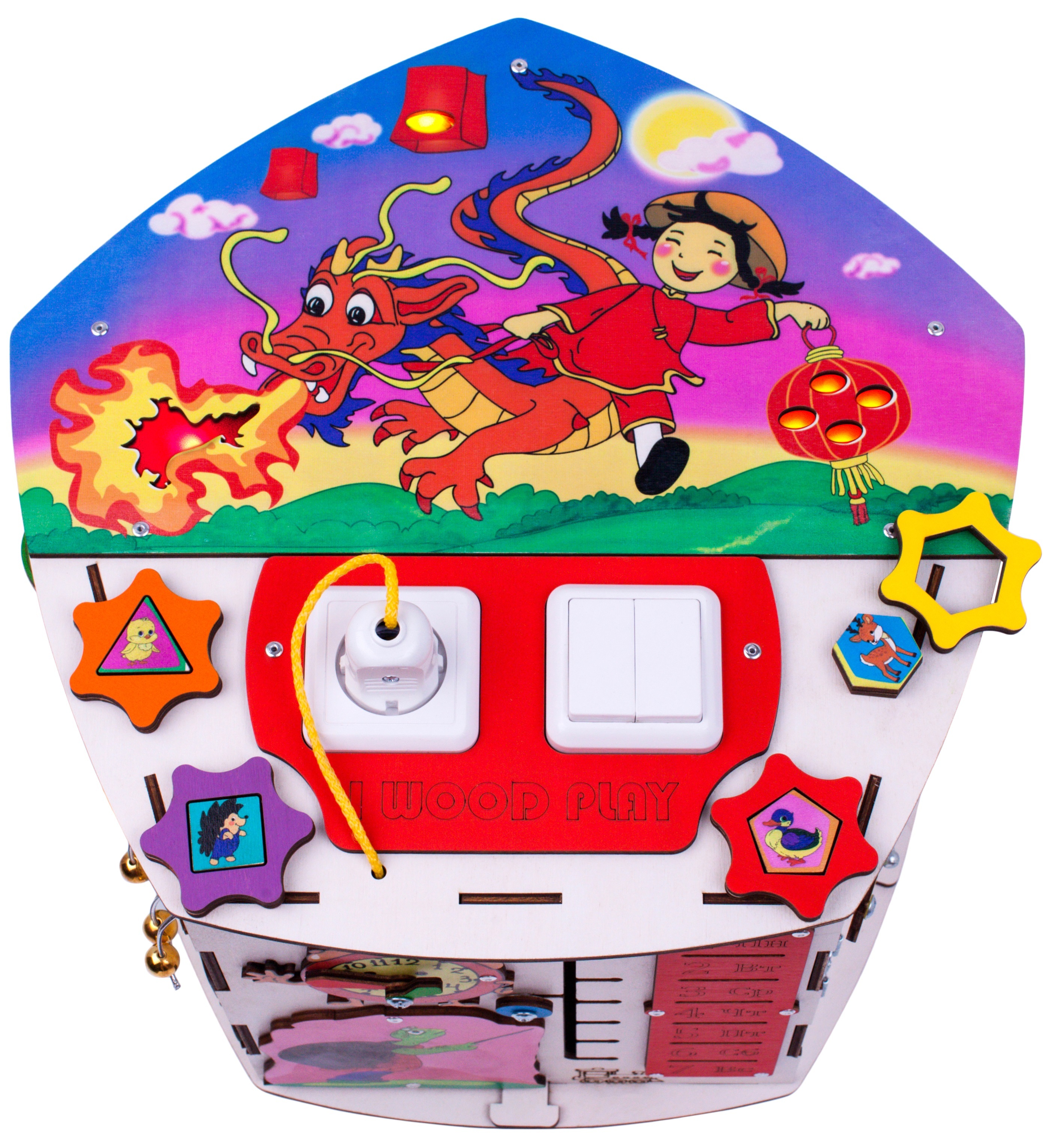 Бизиборд Iwoodplay Домик Вращающийся ДРАКОША, 31*38*38 см (свет)