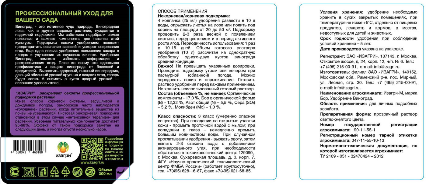 ИЗАГРИ / Жидкое органоминеральное удобрение для винограда, 300 мл