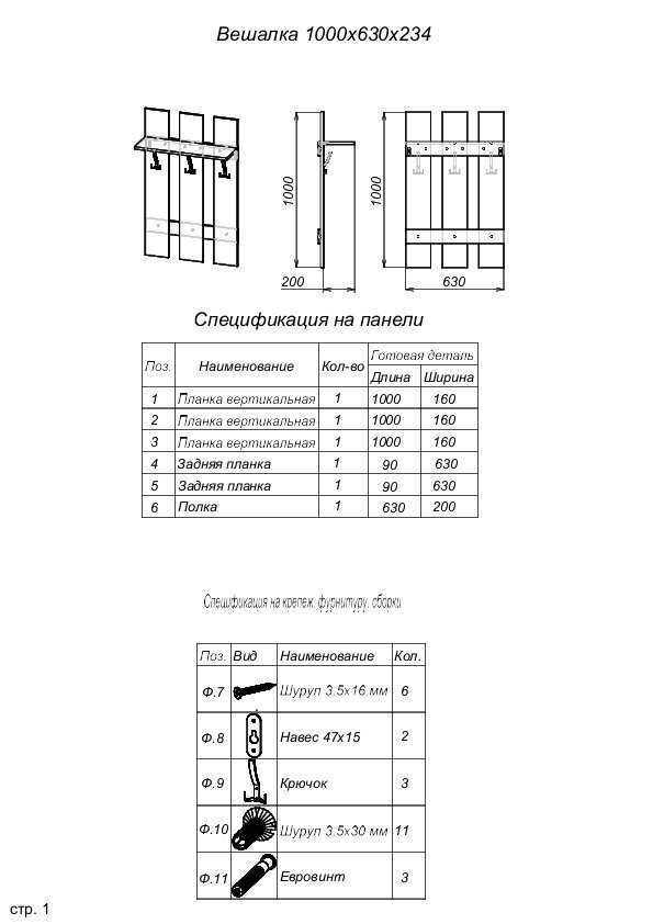 Вешалка в прихожую, Вешалка настенная с полкой, 63х23х100 см