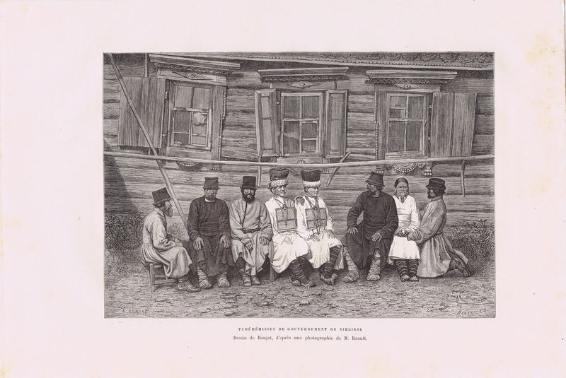 Гравюра антикварная. Черемисы (марийцы) Симбирской губернии. Ксилография. Франция, Париж, 1880 г.