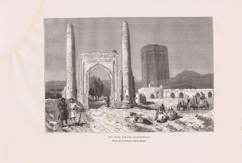 Гравюра антикварная. Азербайджан. Нахичевань, окрестности. Ксилография. Франция, Париж, 1881 г.