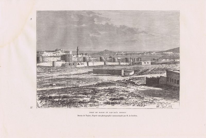 Гравюра антикварная. Порт Баку, Азербайджан. Ксилография. Франция, Париж, 1881 г.