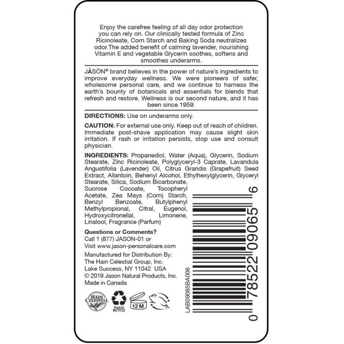 Дезодорант твердый успокаивающий с лавандой, Jason, 71 г.