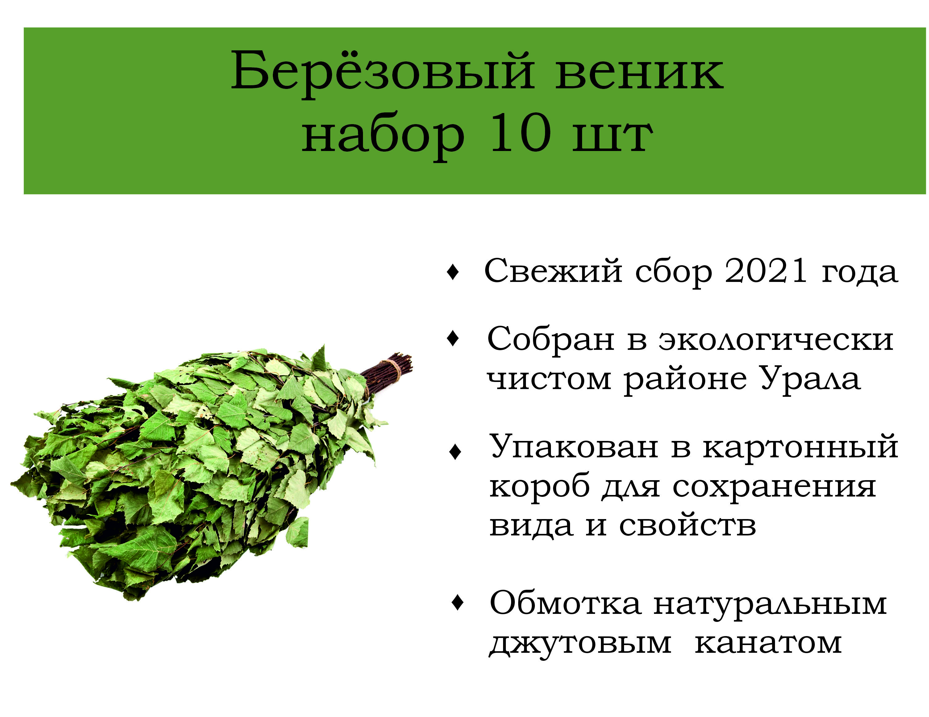 Берёзовый свежий веник из экологически чистого района Урала "Правильная банька", набор 10 шт.