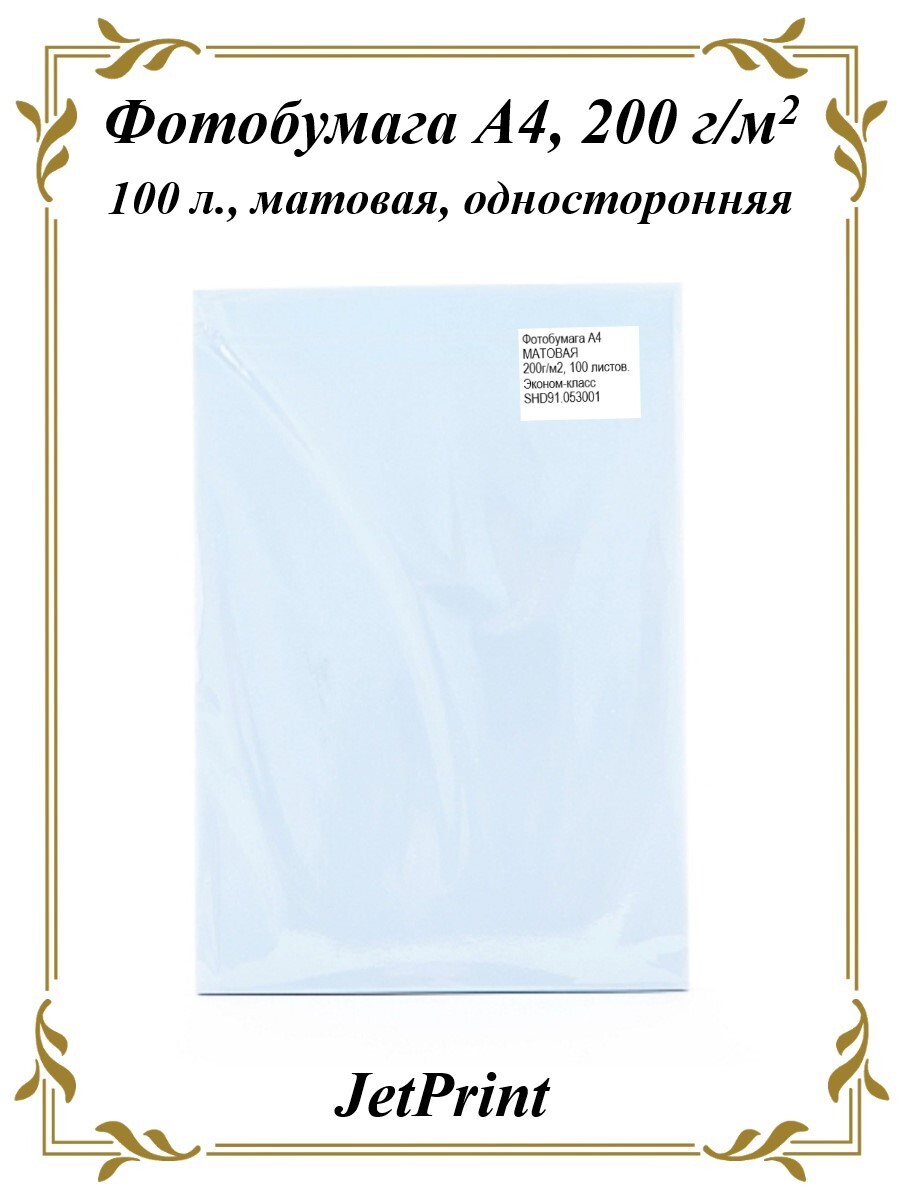 Фотобумага А4, 200 г/м2, 100 л., матовая, односторонняя, эконом упаковка JetPrint