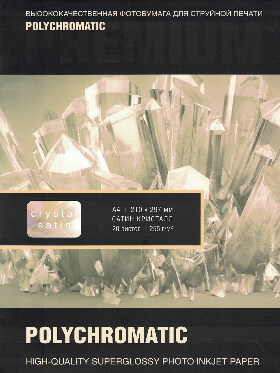 Фотобумага А4, 255 г/м2, 20 л., САТИН КРИСТАЛЛ Premium, односторонняя, Polychromatiс