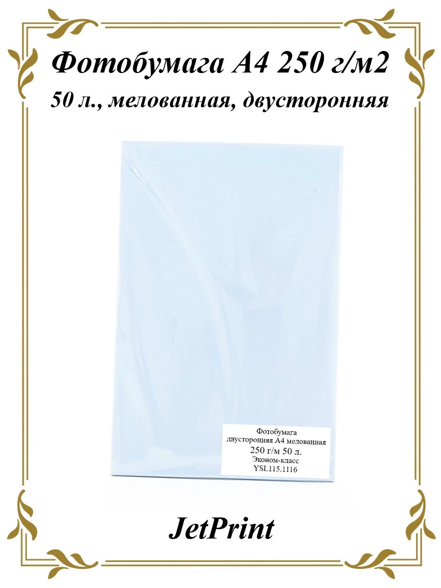 Фотобумага А4, 250 г/м2, 50 л., мелованная, двухсторонняя, JetPrint