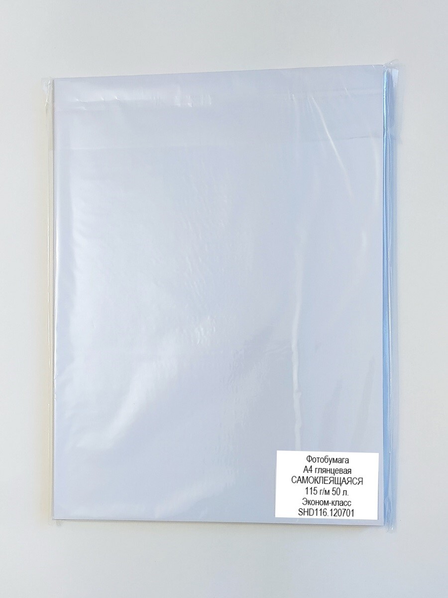 Фотобумага А4, 115 г/м2 глянцевая, самоклеящаяся, 50 л., эконом упаковка, Jetprint