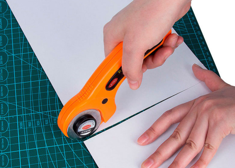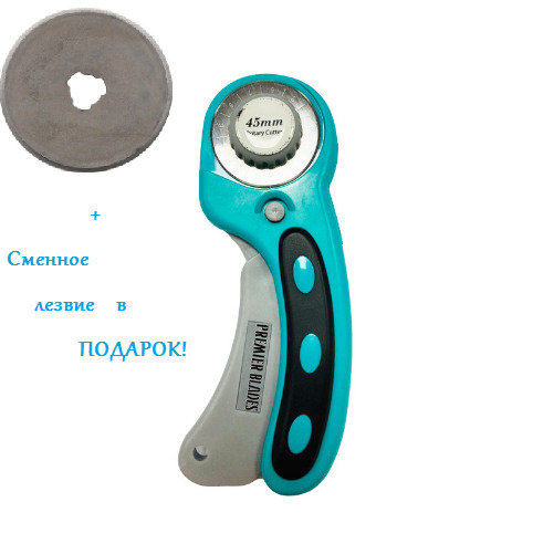 Нож раскройный роликовый для ткани, кожи, линолеума, бумаги - 45 мм+ сменное лезвие в подарок
