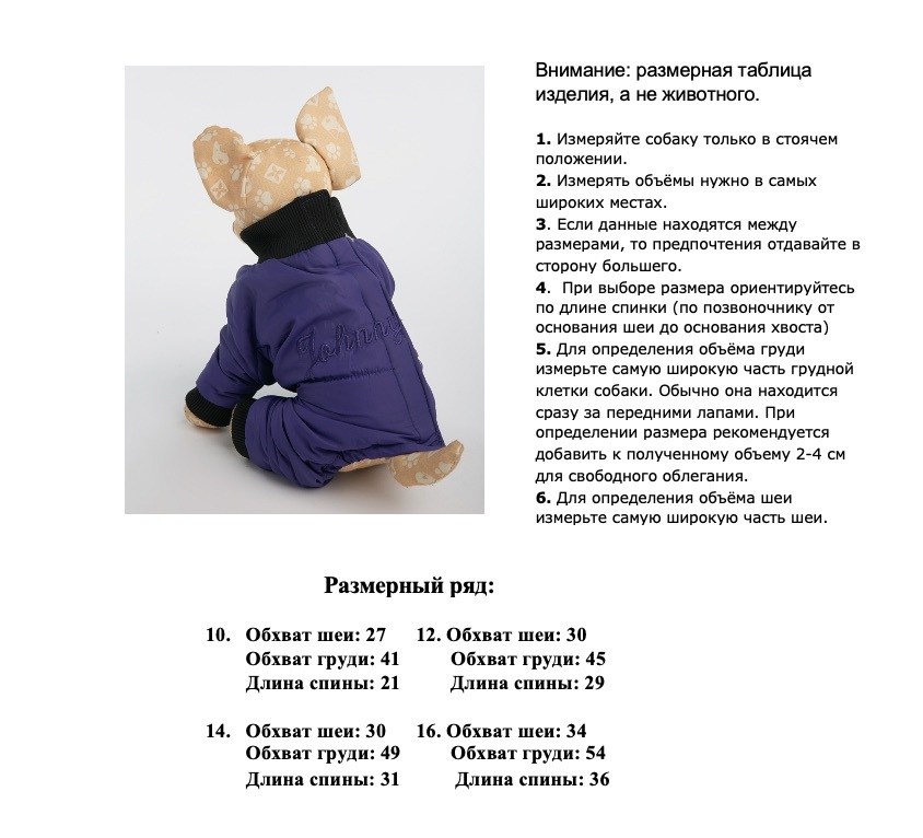 Одежда для собак/ комбинезон для собаки / зимний комбинезон для собаки / Комбинезон Betty