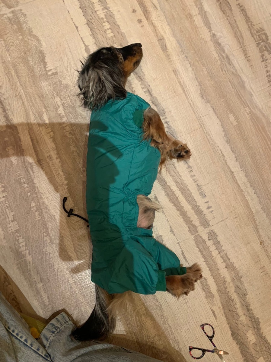 Одежда для собак / Одежда для таксы / Комбинезон для таксы утеплённый зимний "Спорт"