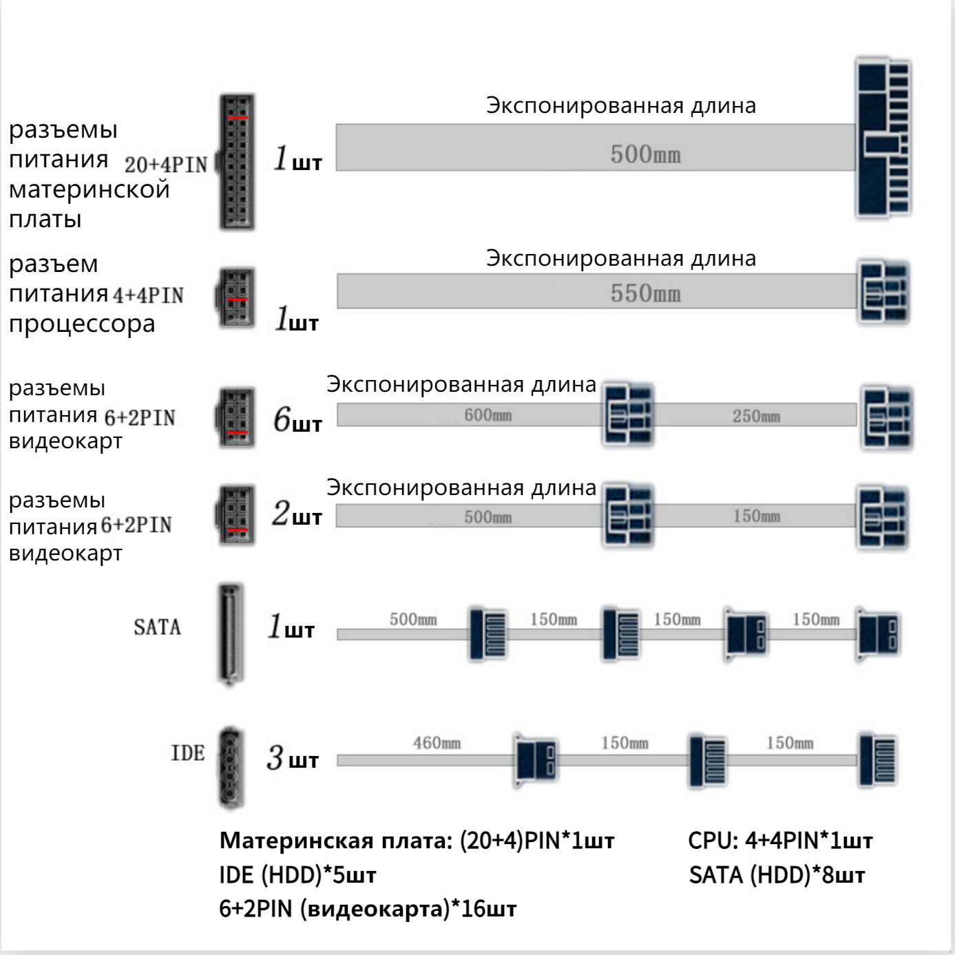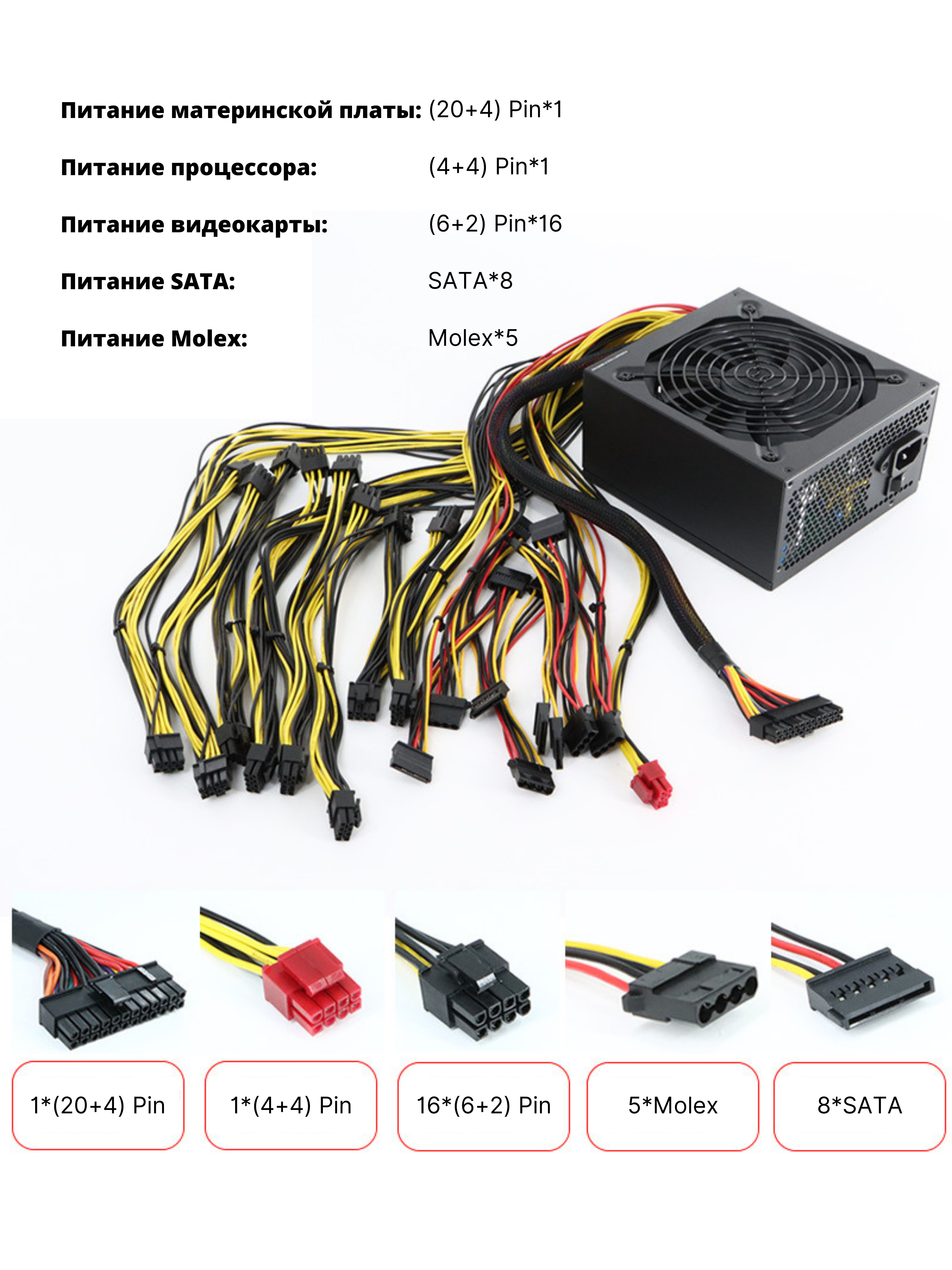Блок питания для майнинга модульный 1800W на 7 видеокарт / Блок питания компьютера / ATX