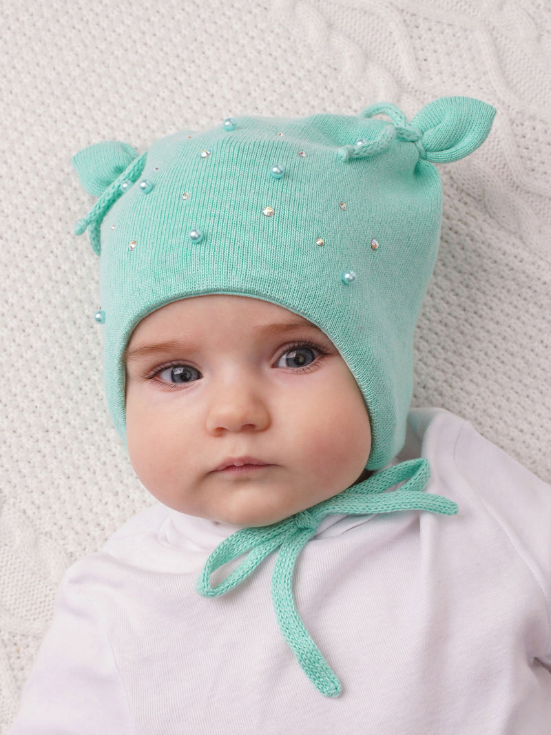 Рукавички "Листочки" журавлик вязаные, ассорти, 50% шерсть, 50% пан, подклад 100% хлопок, от 0-6 мес