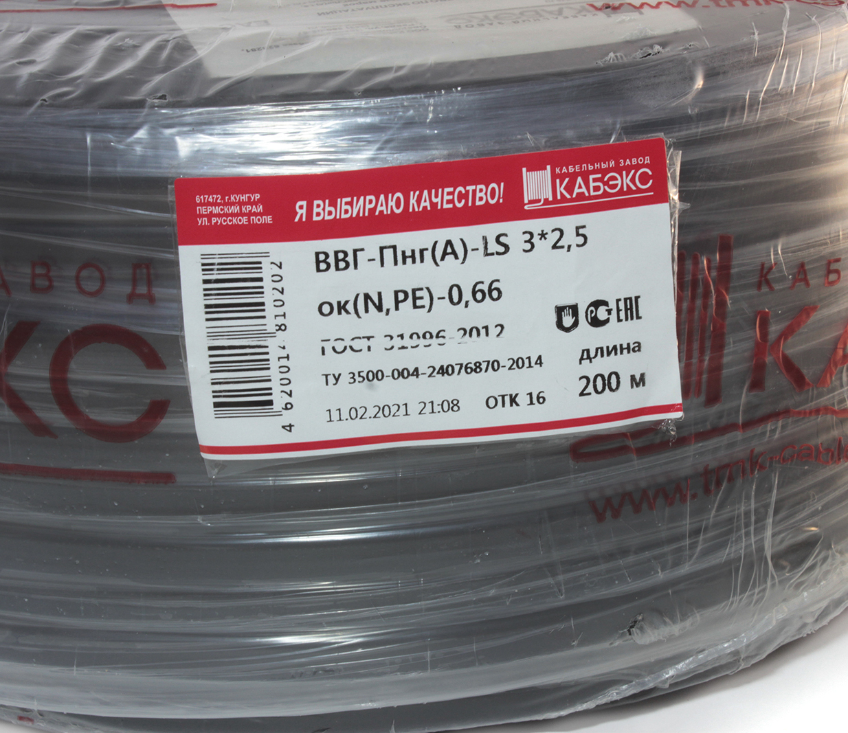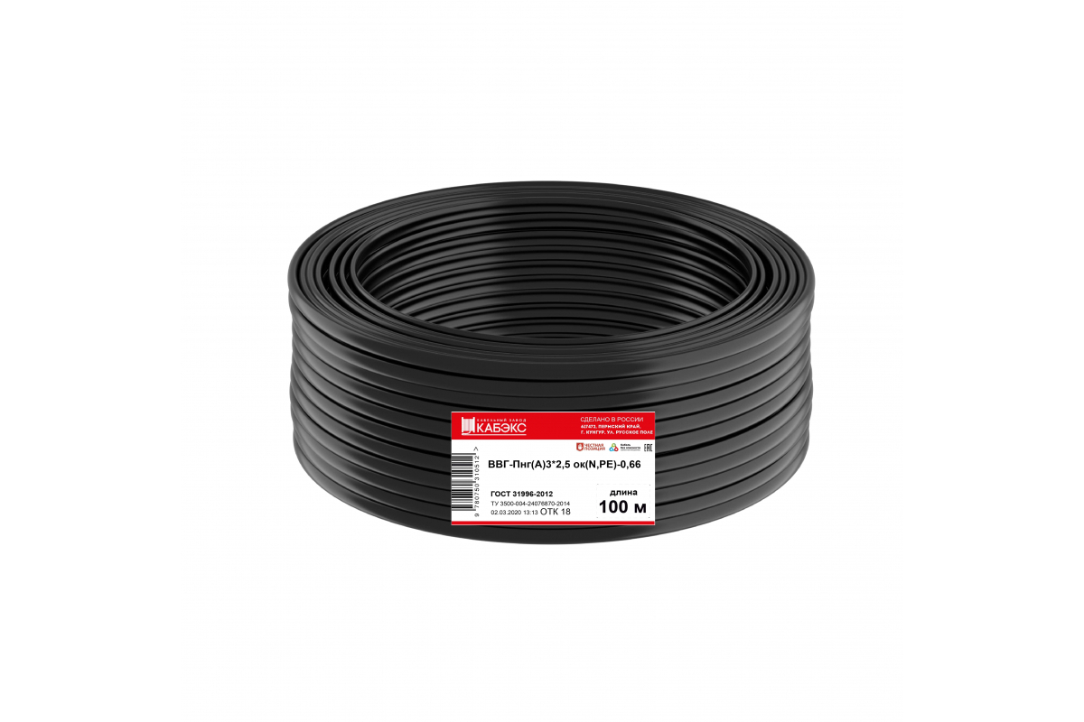 Кабель медный силовой 4х2,5 ВВГнг(А) 4х2,5 ок(N)-0,66 Кабэкс