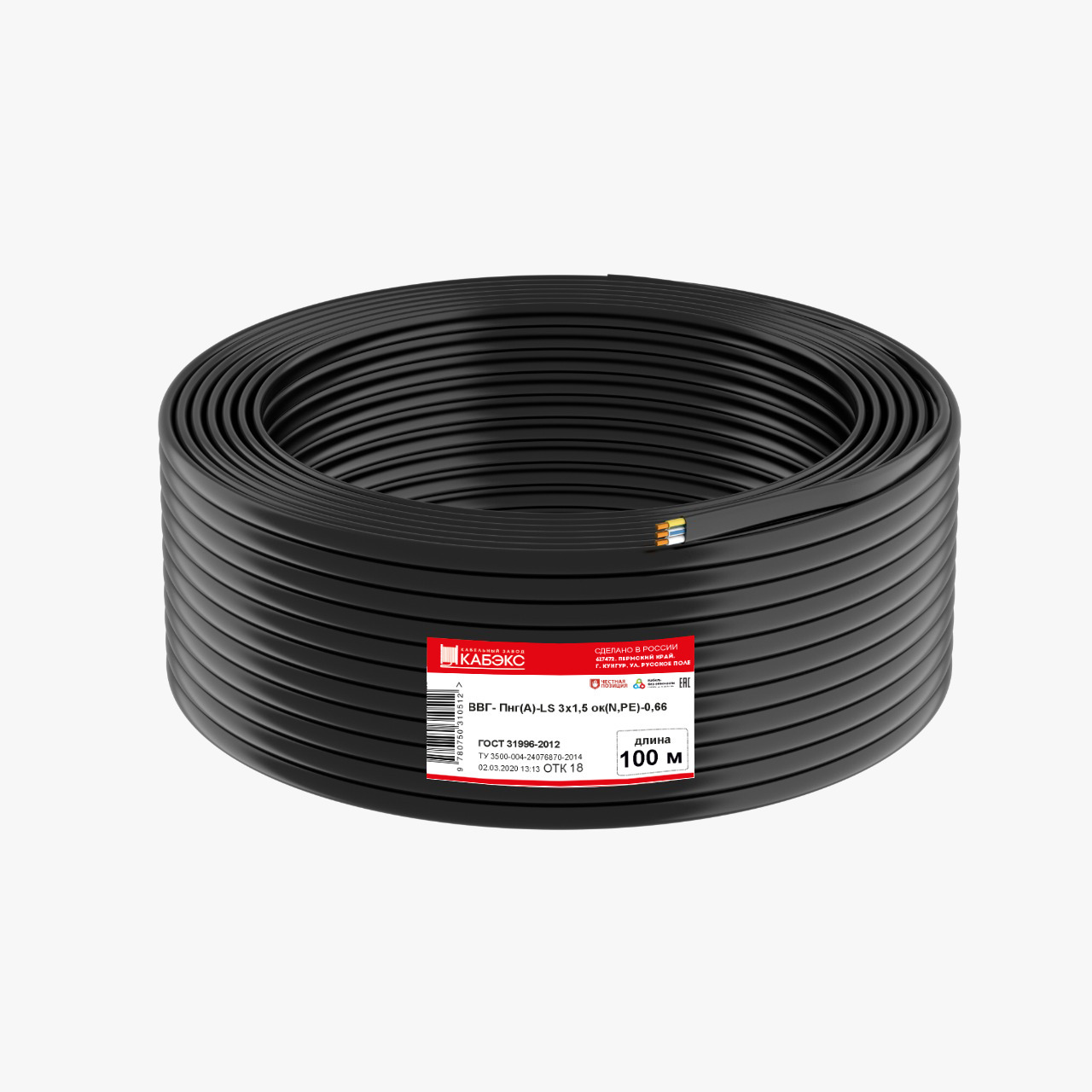 Электрический кабель Кабэкс ВВГ-Пнг(А)-LS 3 x 1,5 мм², 100 м