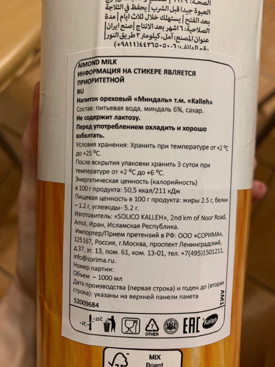 Напиток ореховый "Миндаль", 1 л (Иран) Арт. 700014