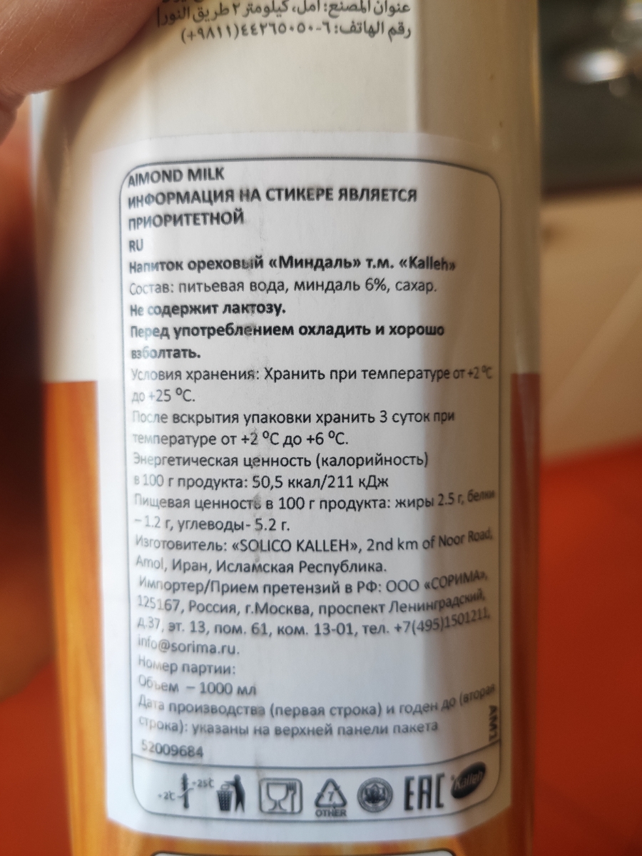 Напиток ореховый "Миндаль", 1 л*2шт Иран
