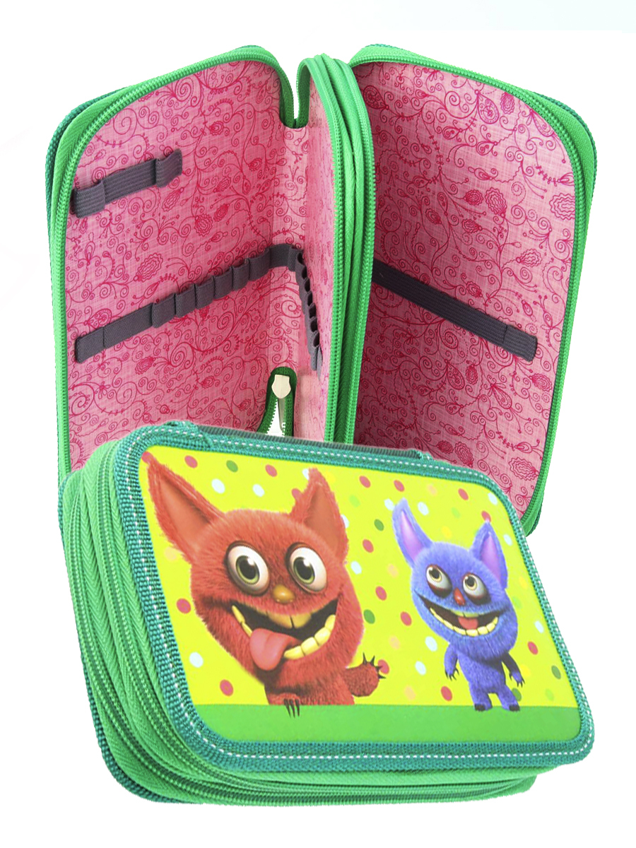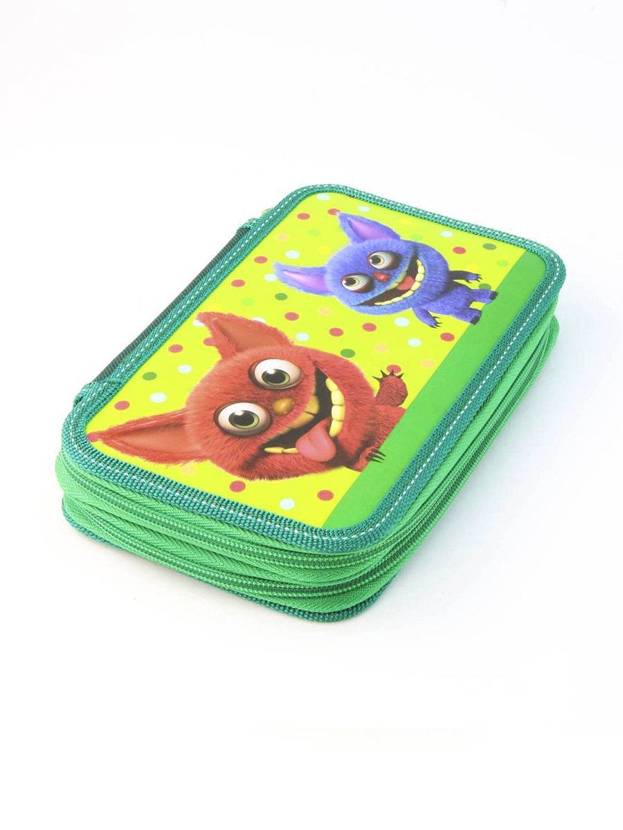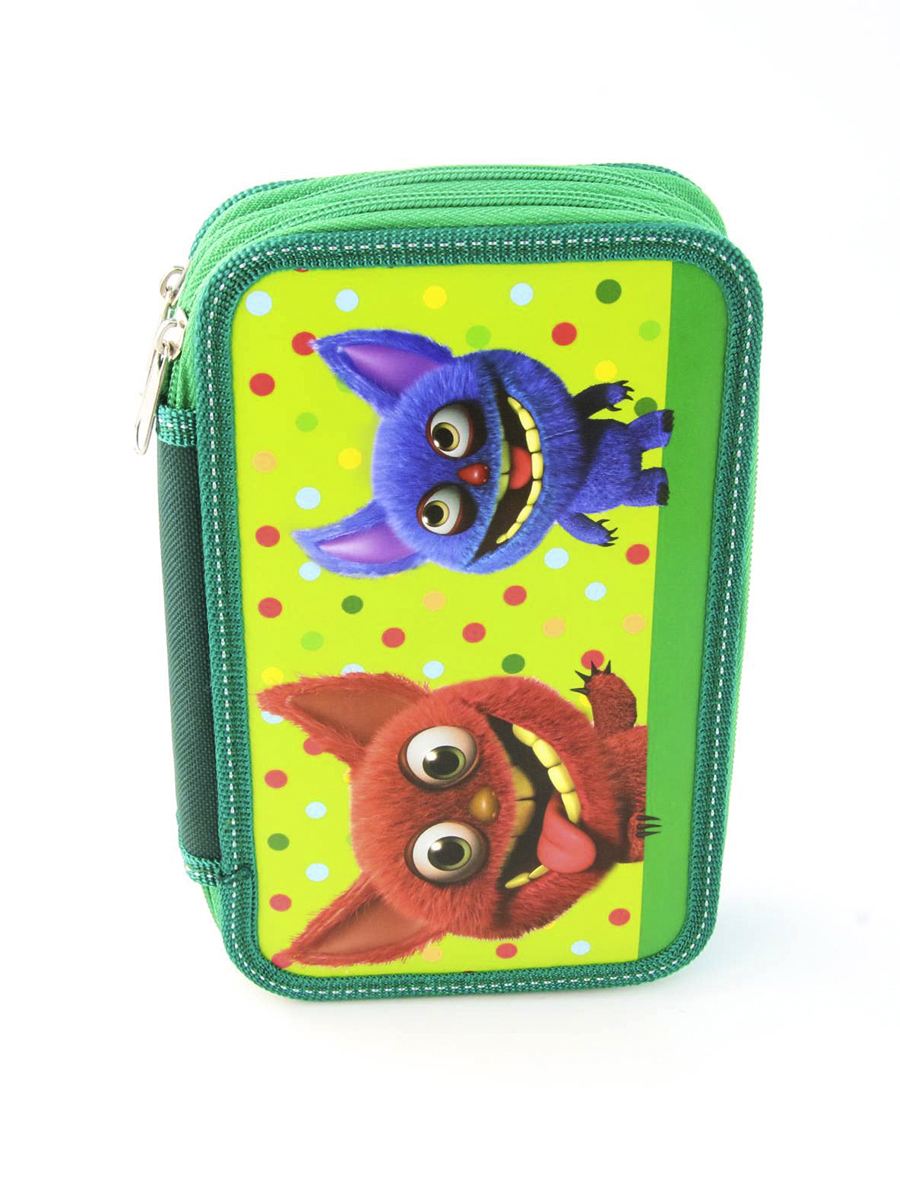Пенал 2 отделения увеличенный лам. 2621032 Веселые монстрики, на молнии, зеленый