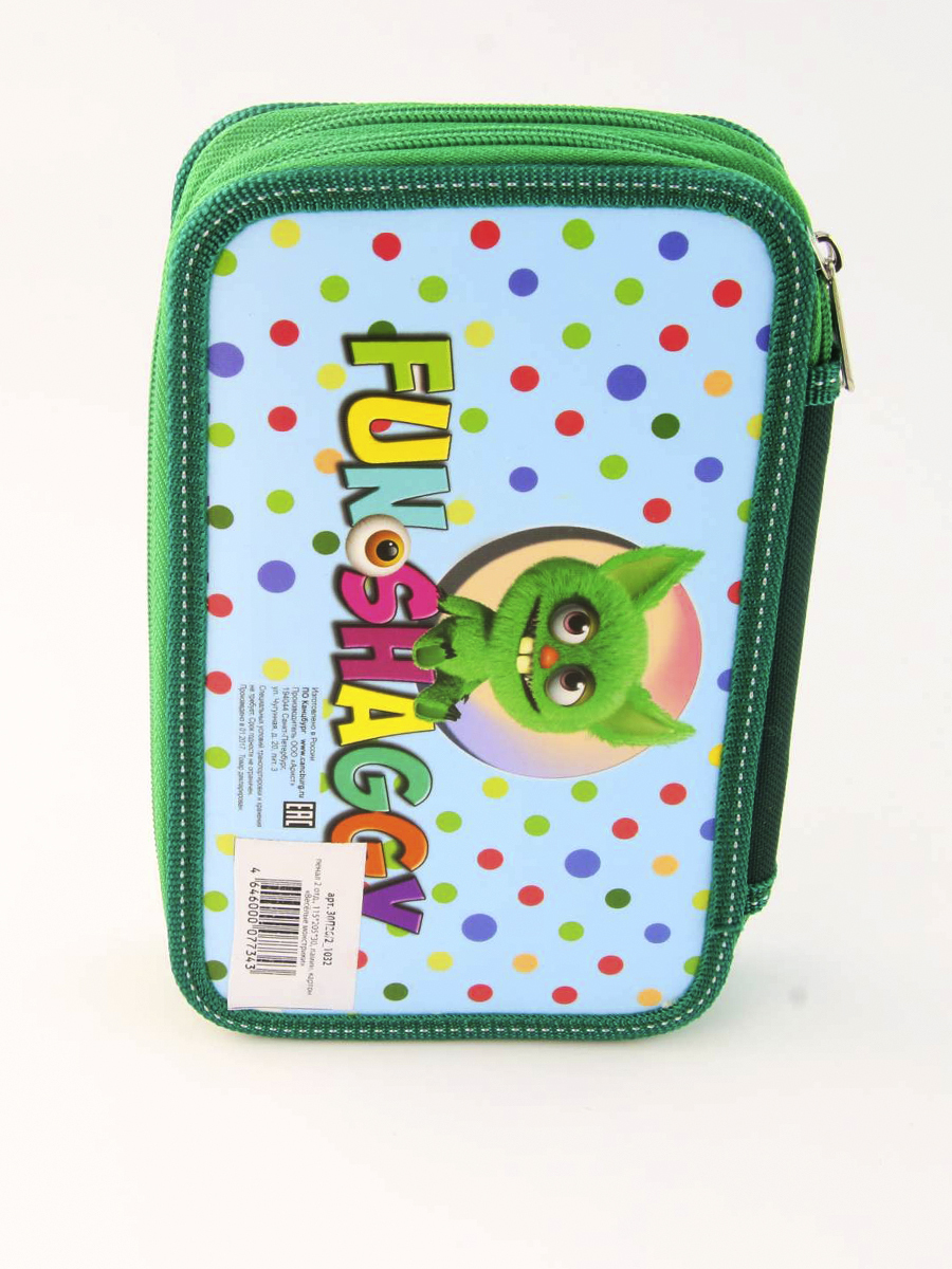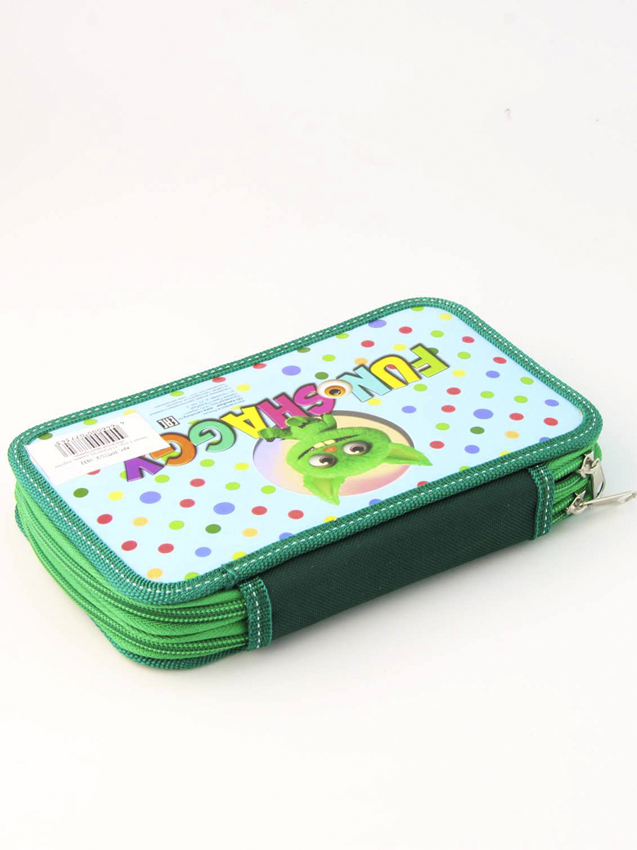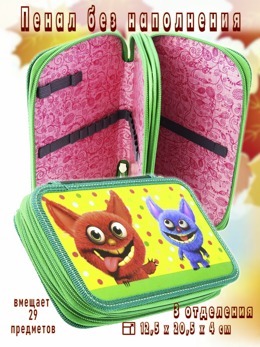 Пенал 2 отделения увеличенный лам. 2621032 Веселые монстрики, на молнии, зеленый
