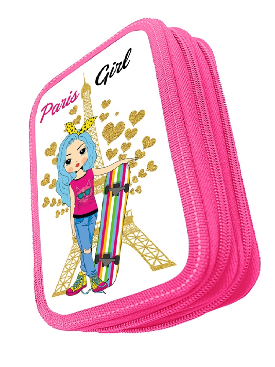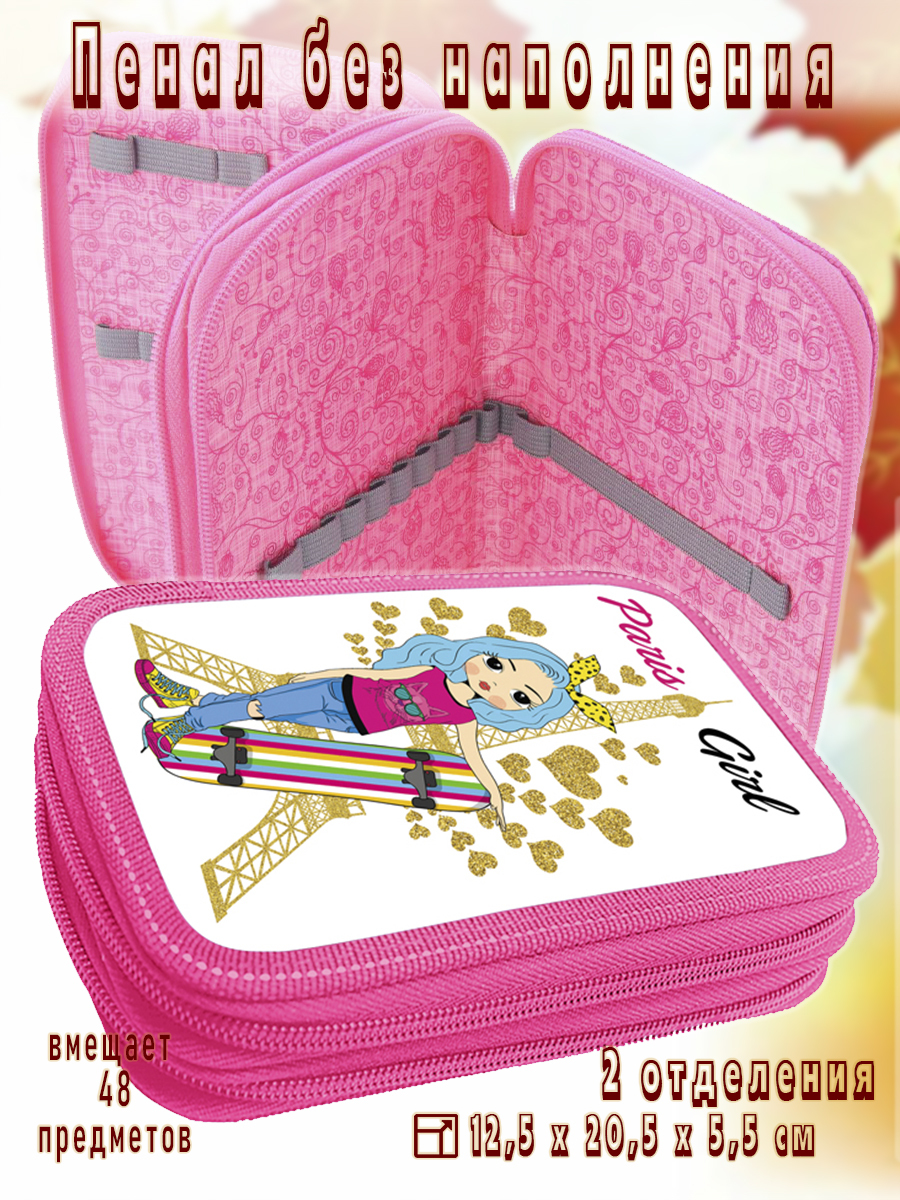 Пенал 2 отделения увеличенный Девочка со скейтом (париж)