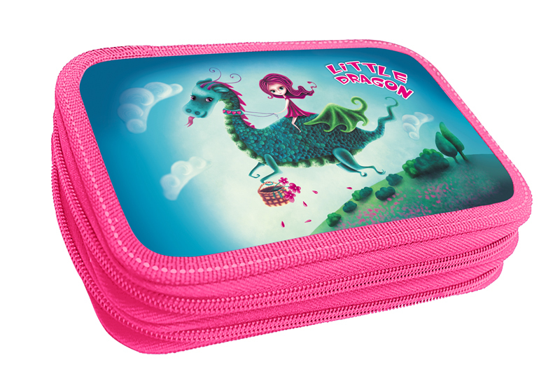 Пенал 2 отделения увеличенный 125*205*40 мм, "Дракоша" ,металл+объем, на молнии, розовый