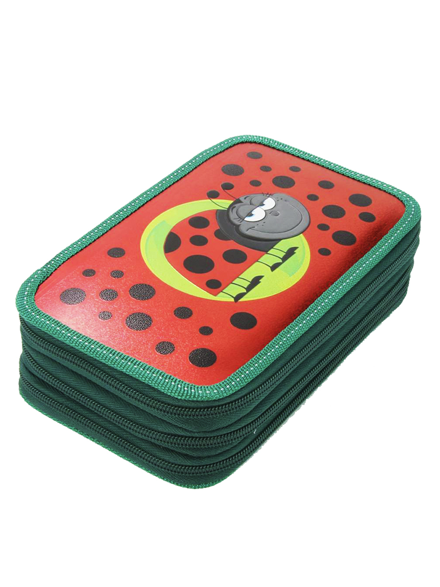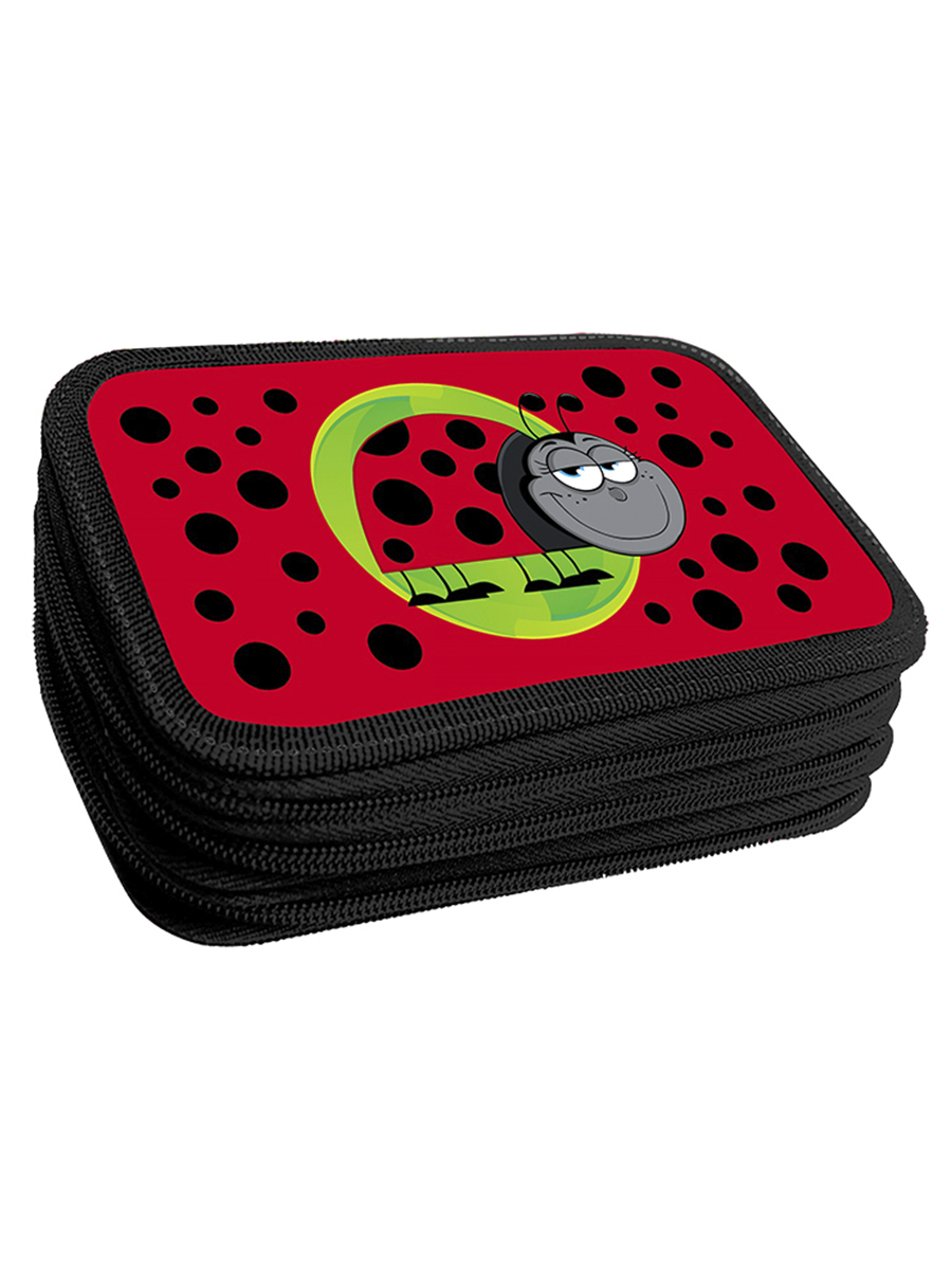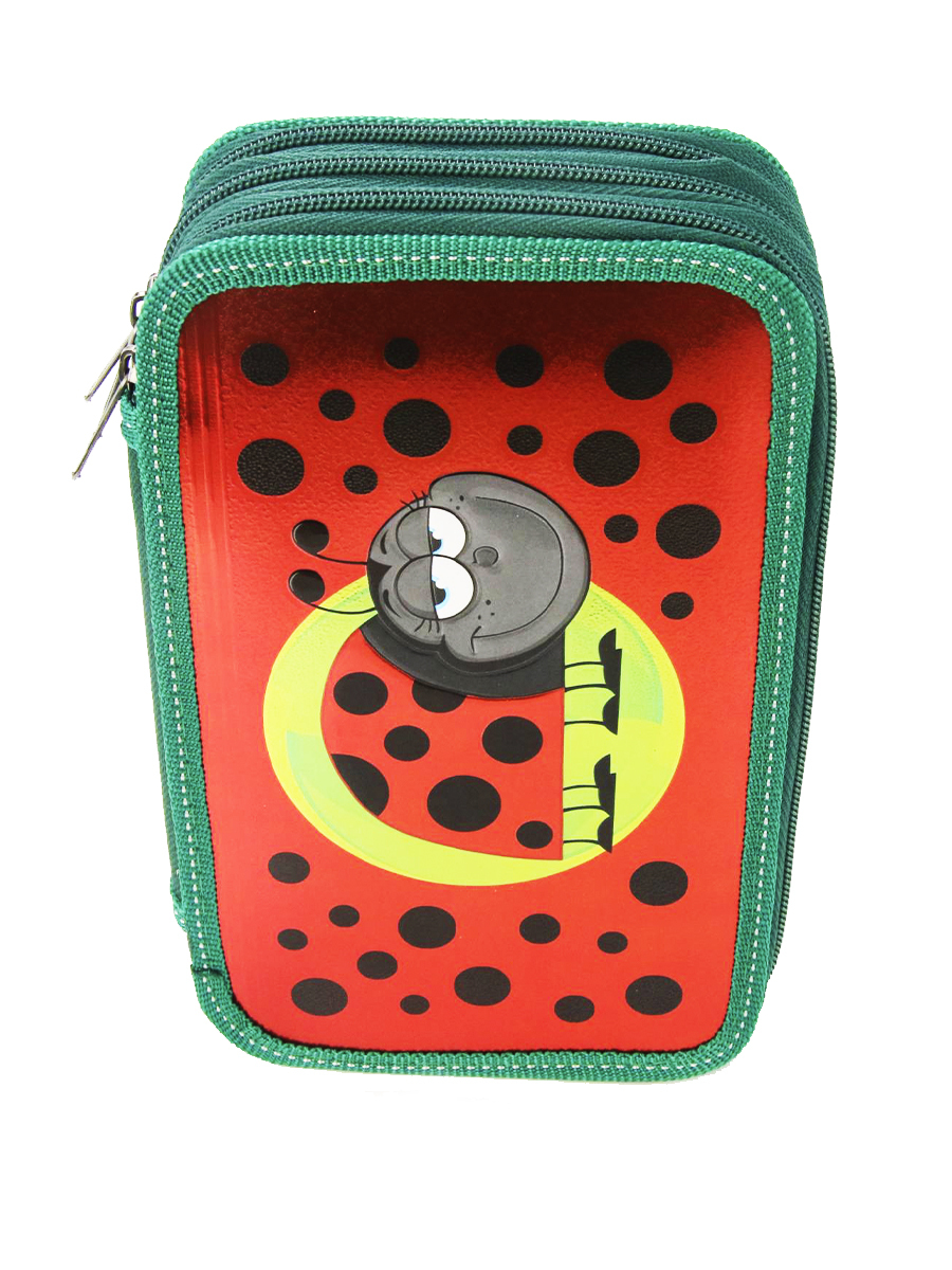Пенал 3 отделения лам.серебр.объем Божья коровка, цвет красный