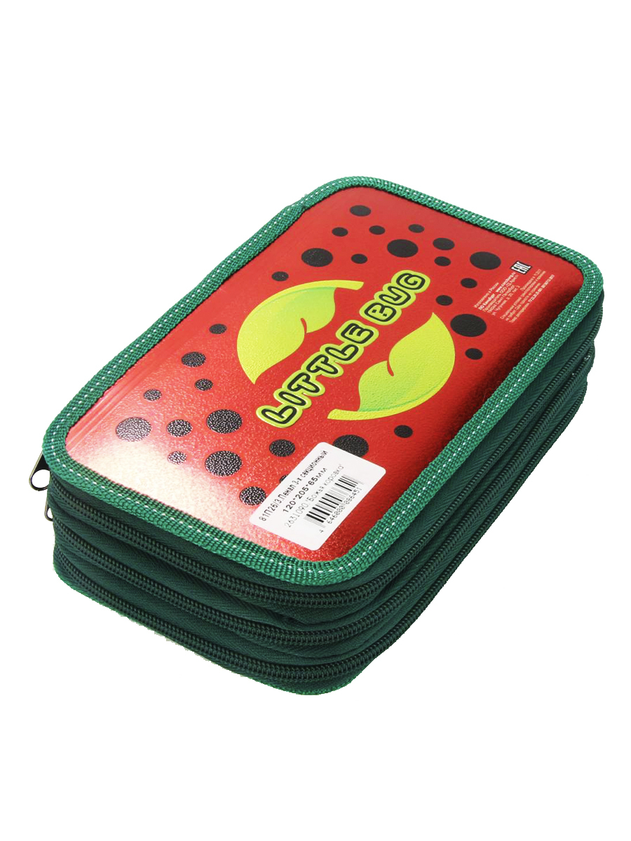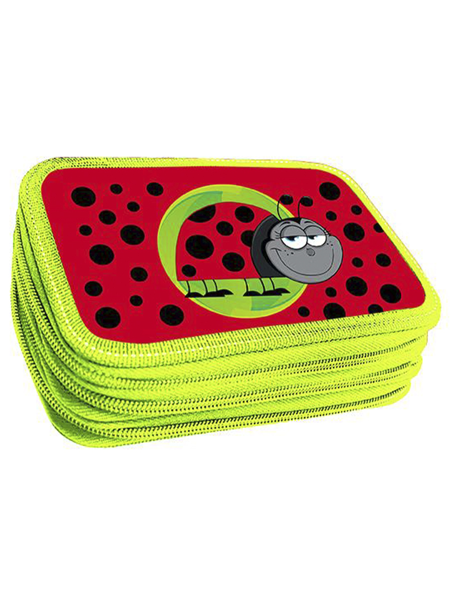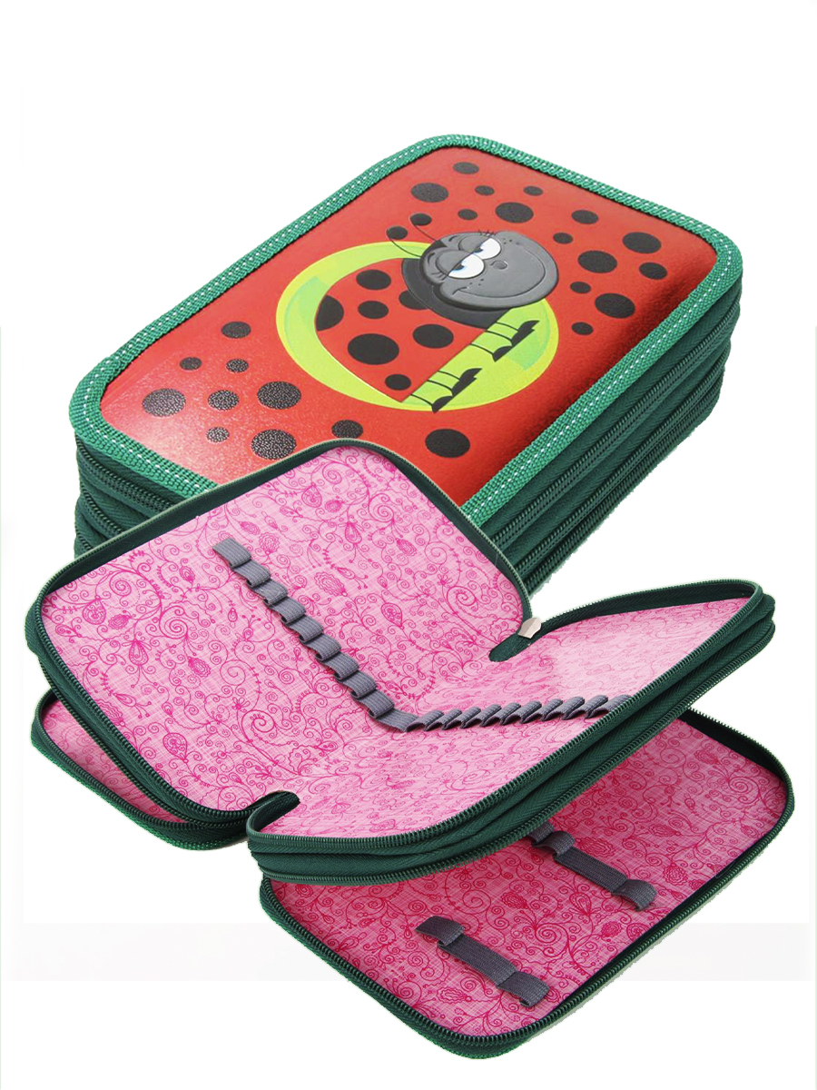 Пенал 3 отделения лам.серебр.объем Божья коровка, цвет красный