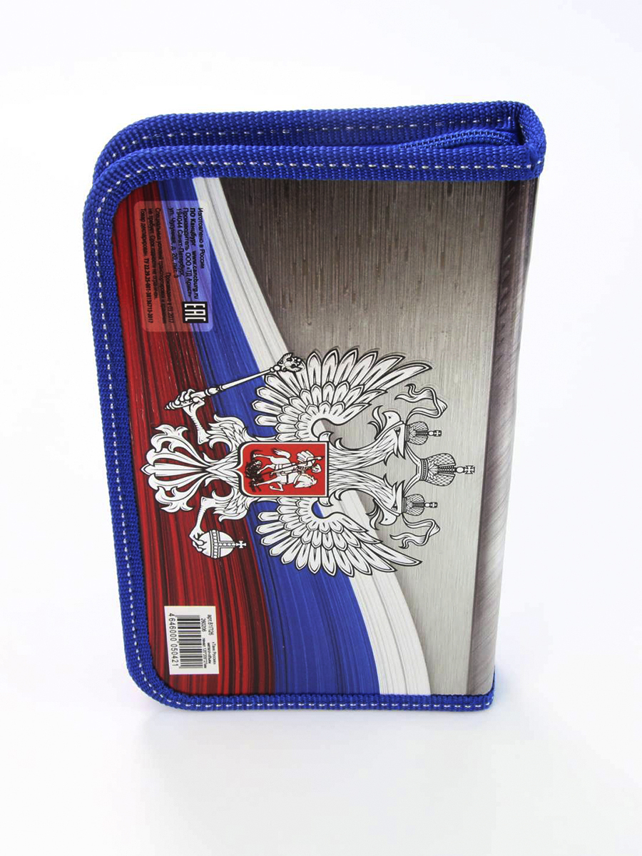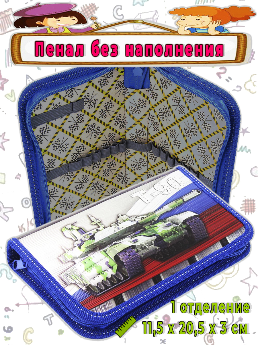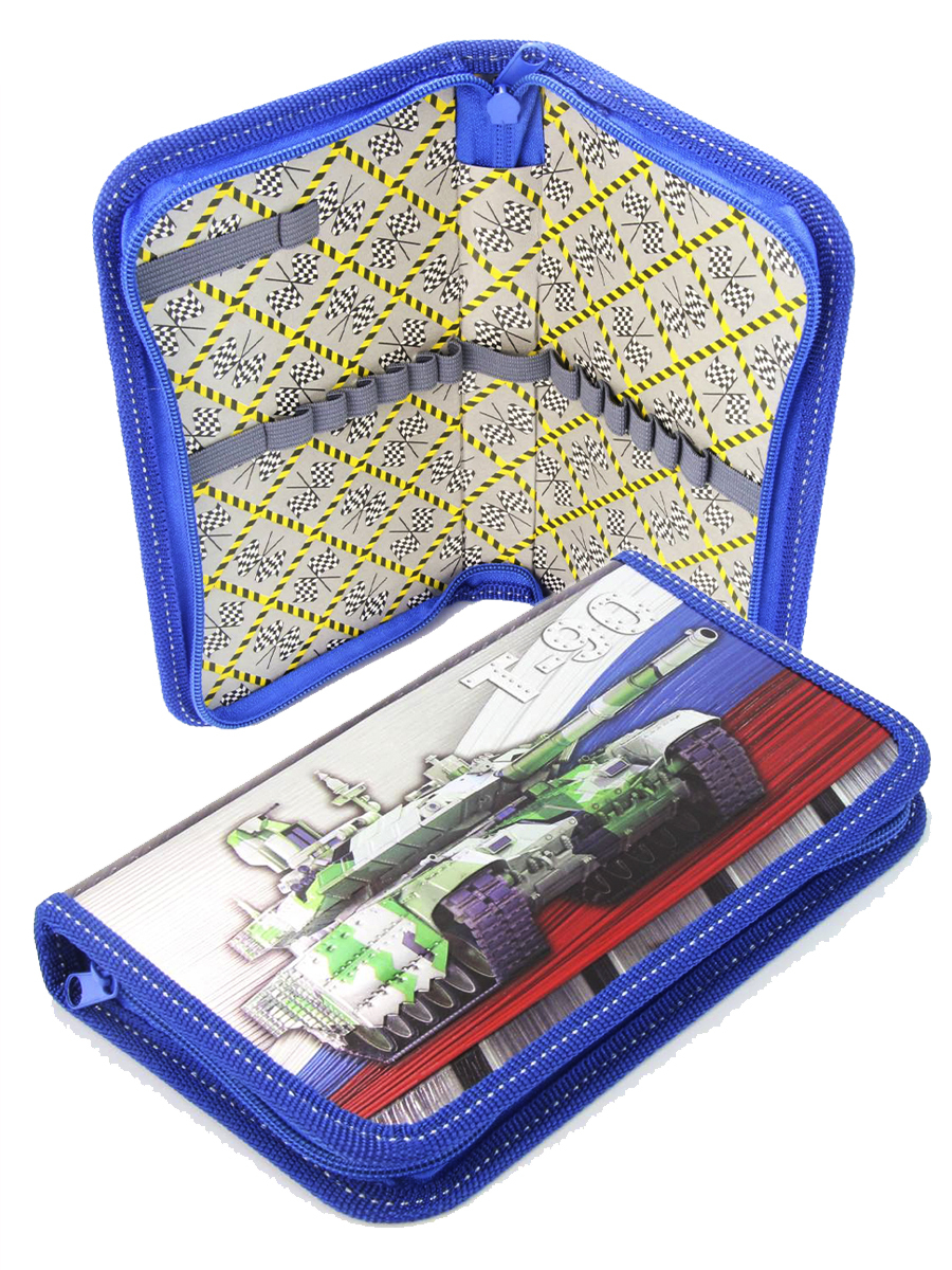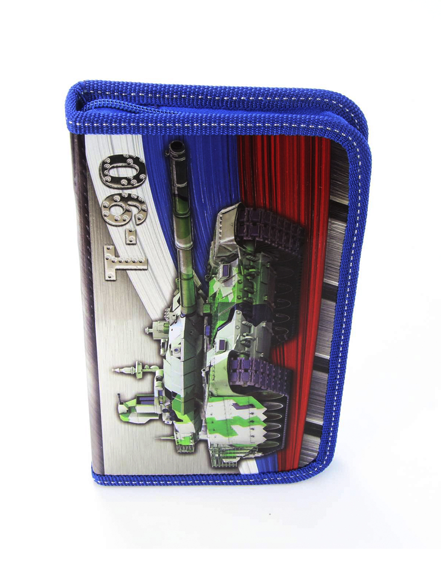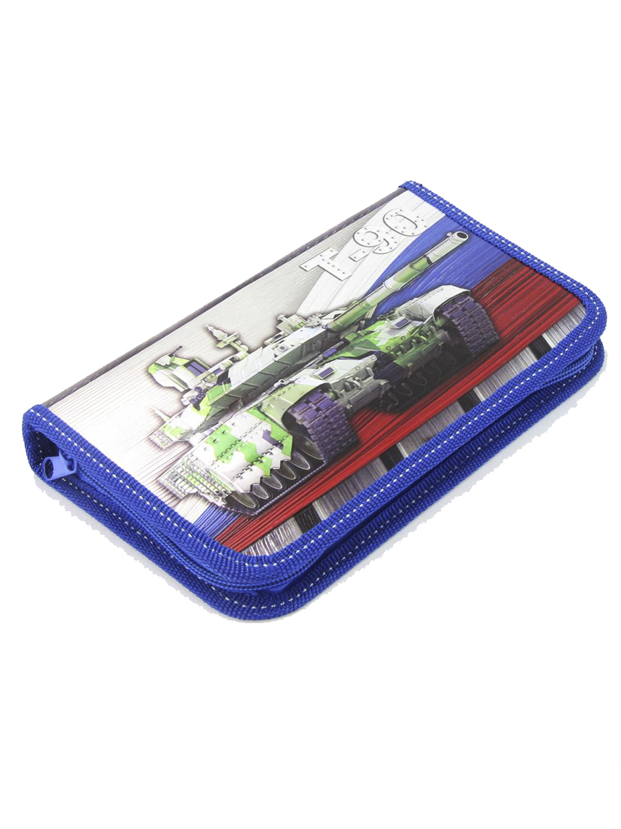 Пенал 1 отделение лам.серебро объем 260206 Танк Россия, цвет синий