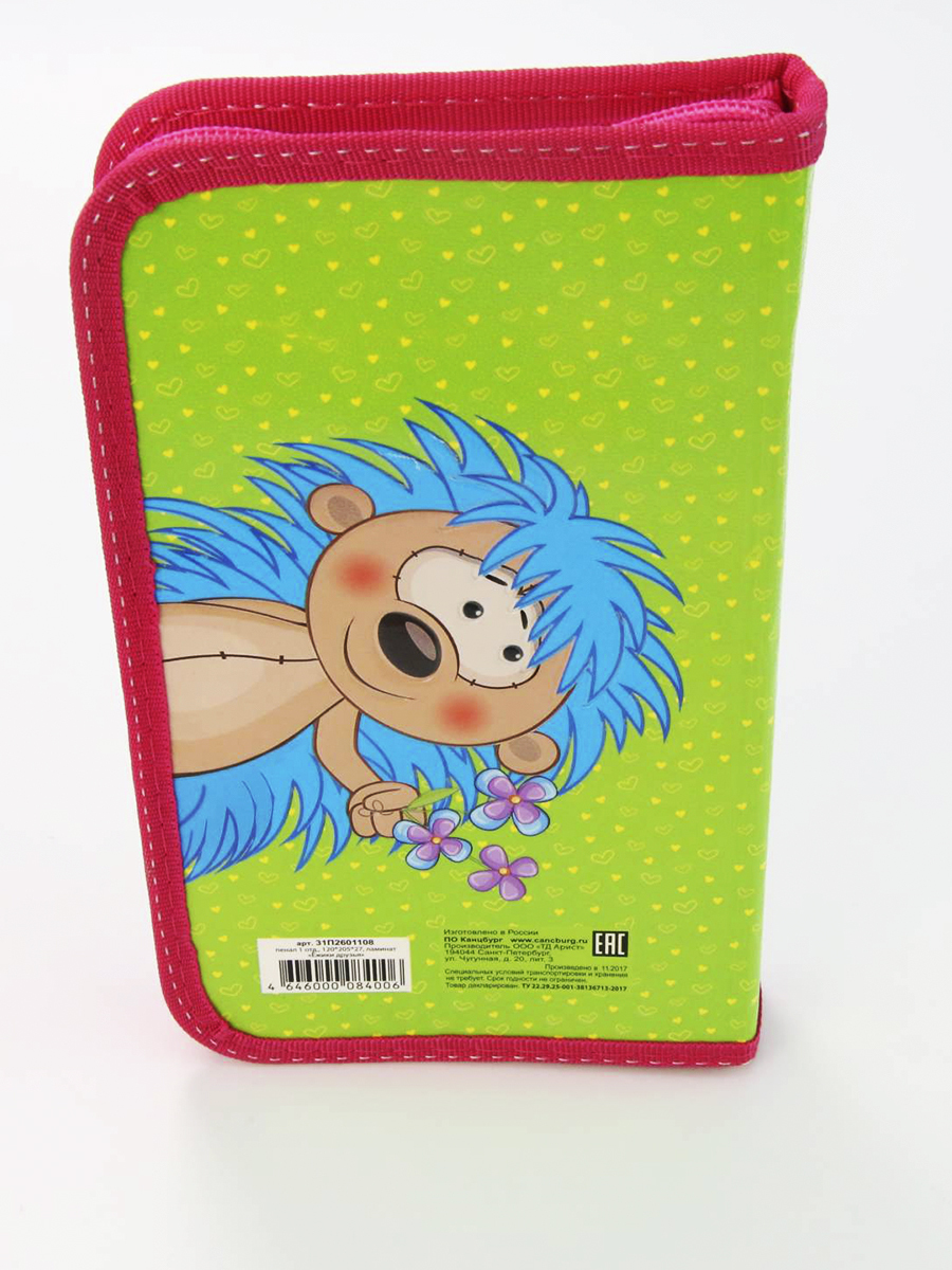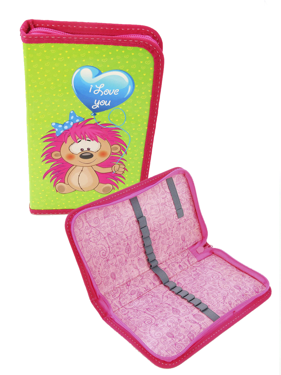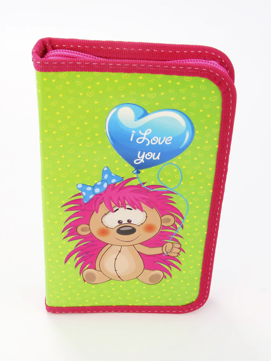 Пенал 1 отделение лам. объем 2601108 Ежики друзья , цвет салатовый