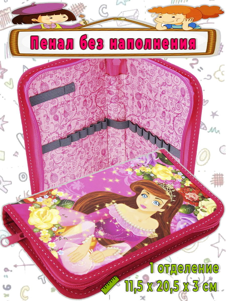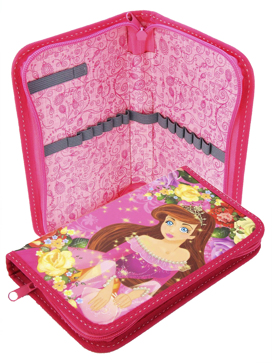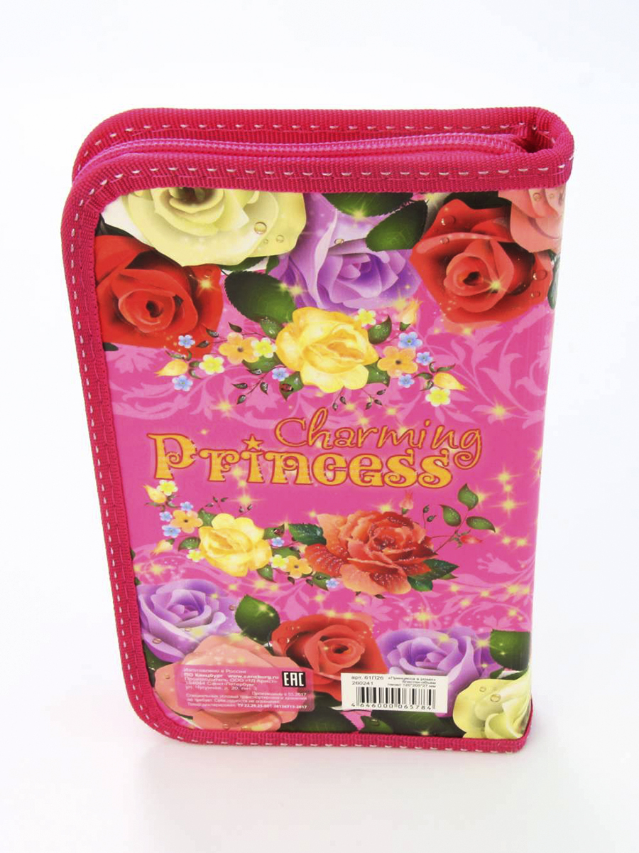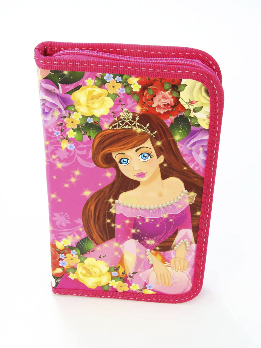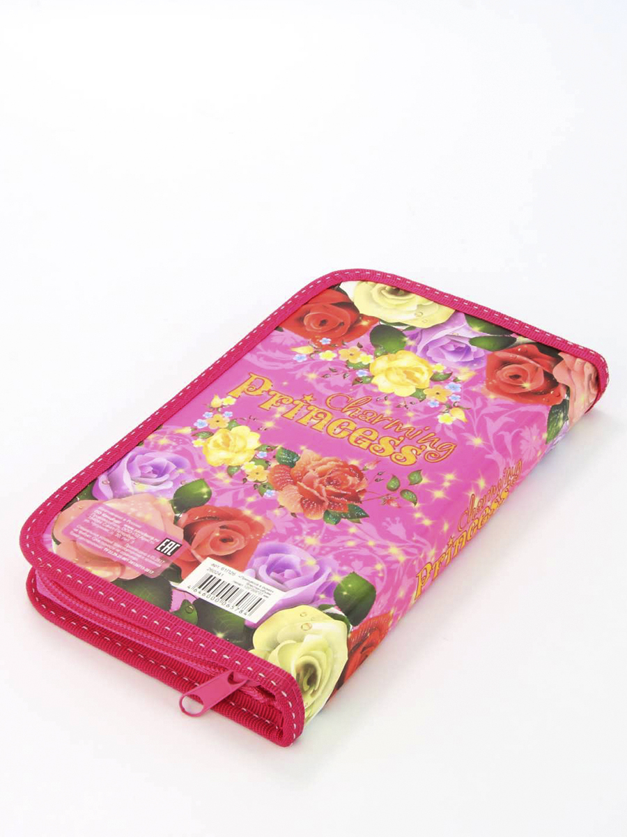 Пенал 1 отделение лам.блестки объем 260241 Принцесса в розах, цвет розовый