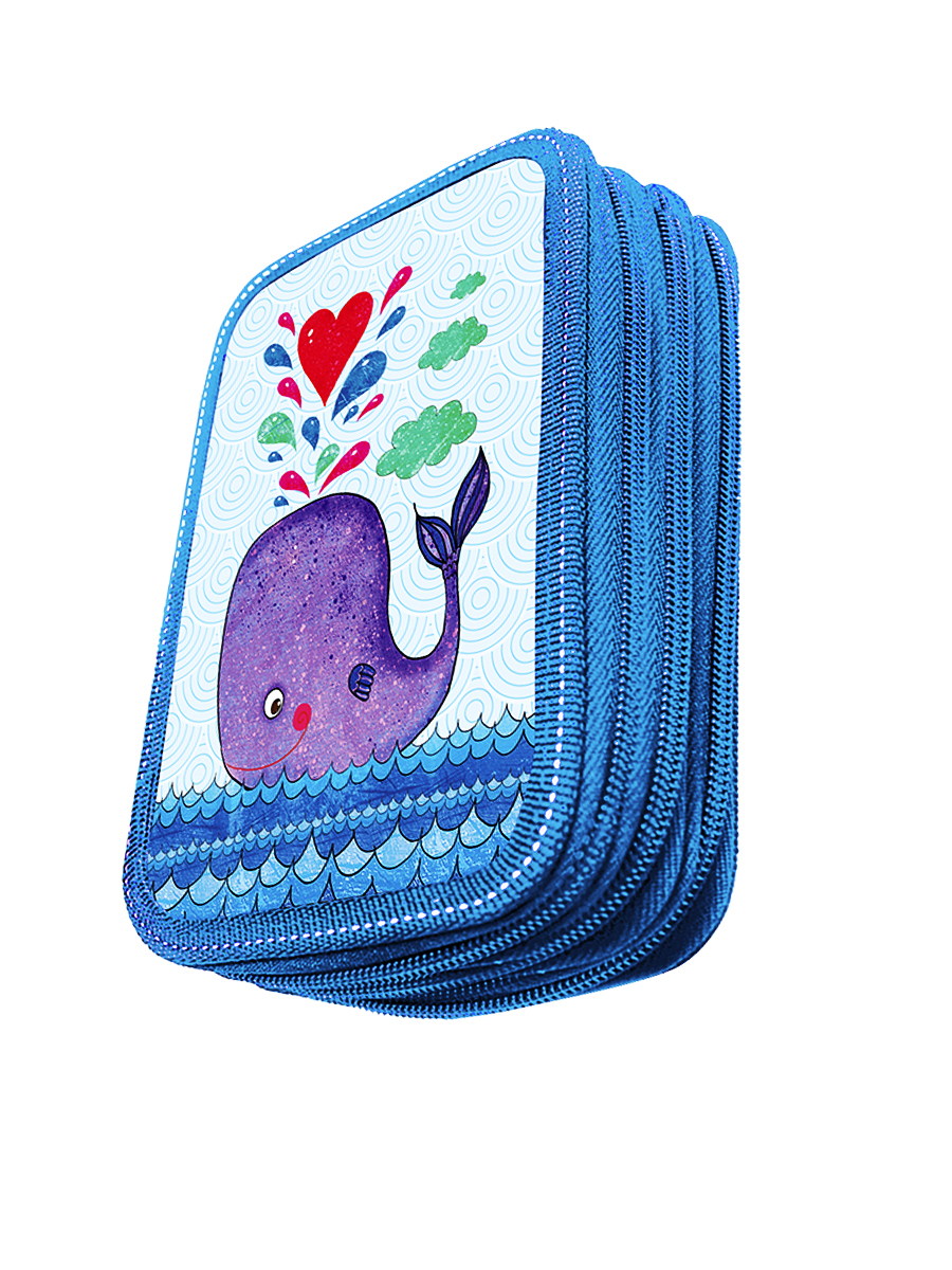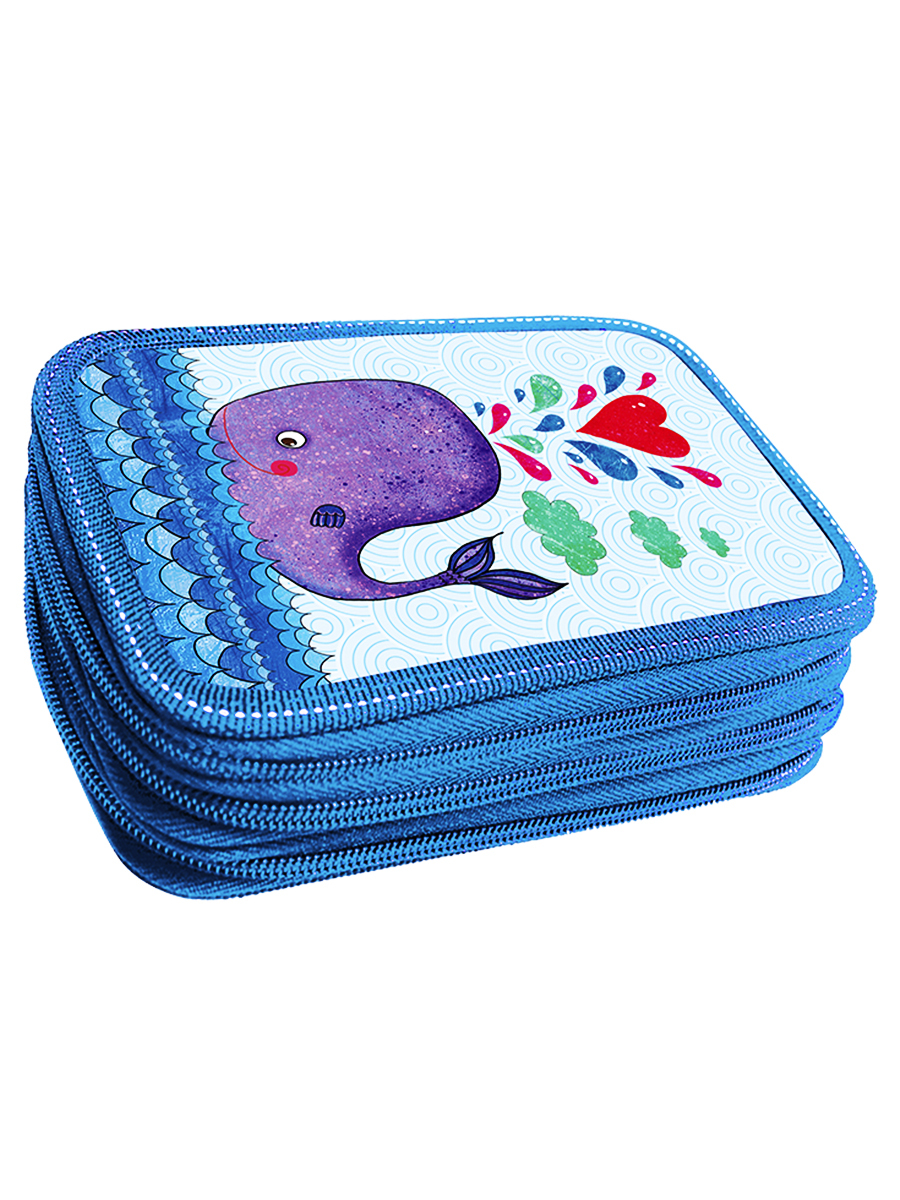 Пенал 3 отделения лам.объем 2631075 Кит, цвет голубой