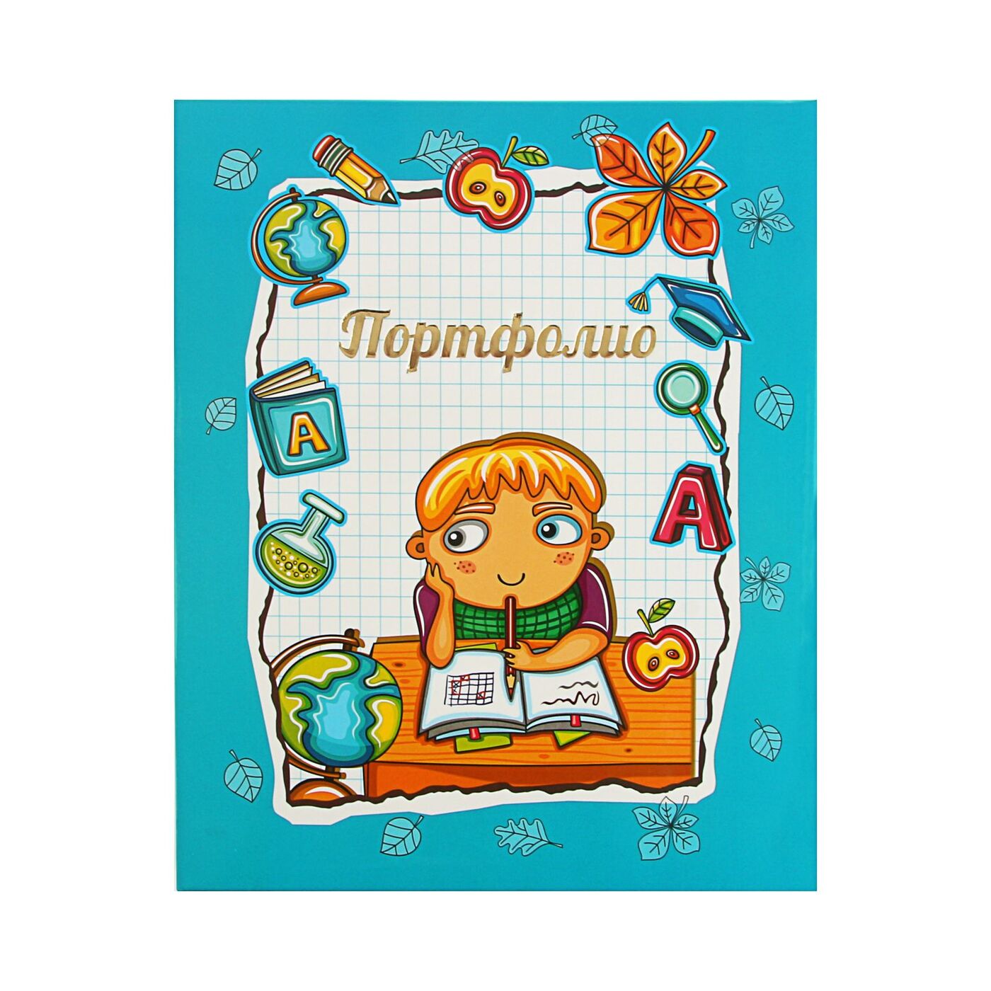 Портфолио папка на кольцах, ламинированный картон, А4, 10 листов, для мальчика (голубой)