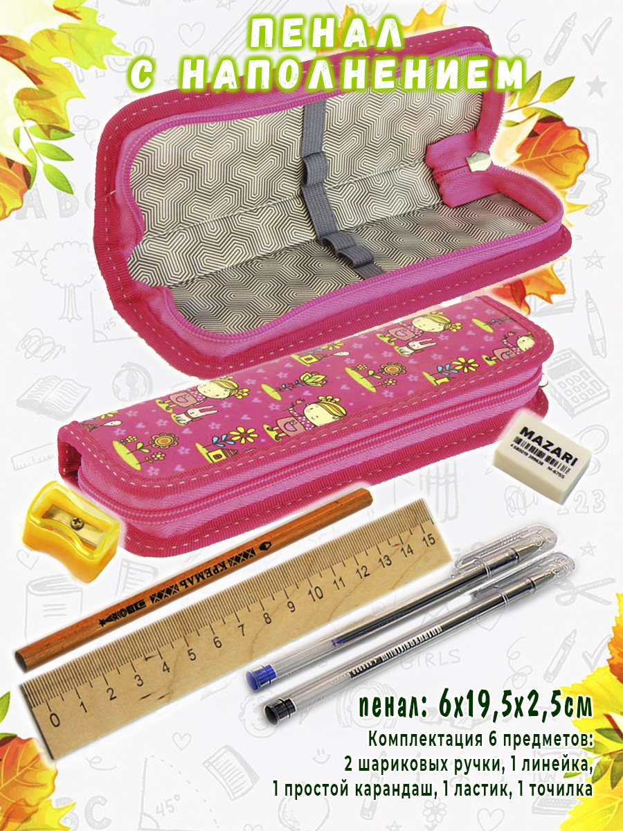 Пенал с наполнением П13 1 отделение, Девочка с зайкой