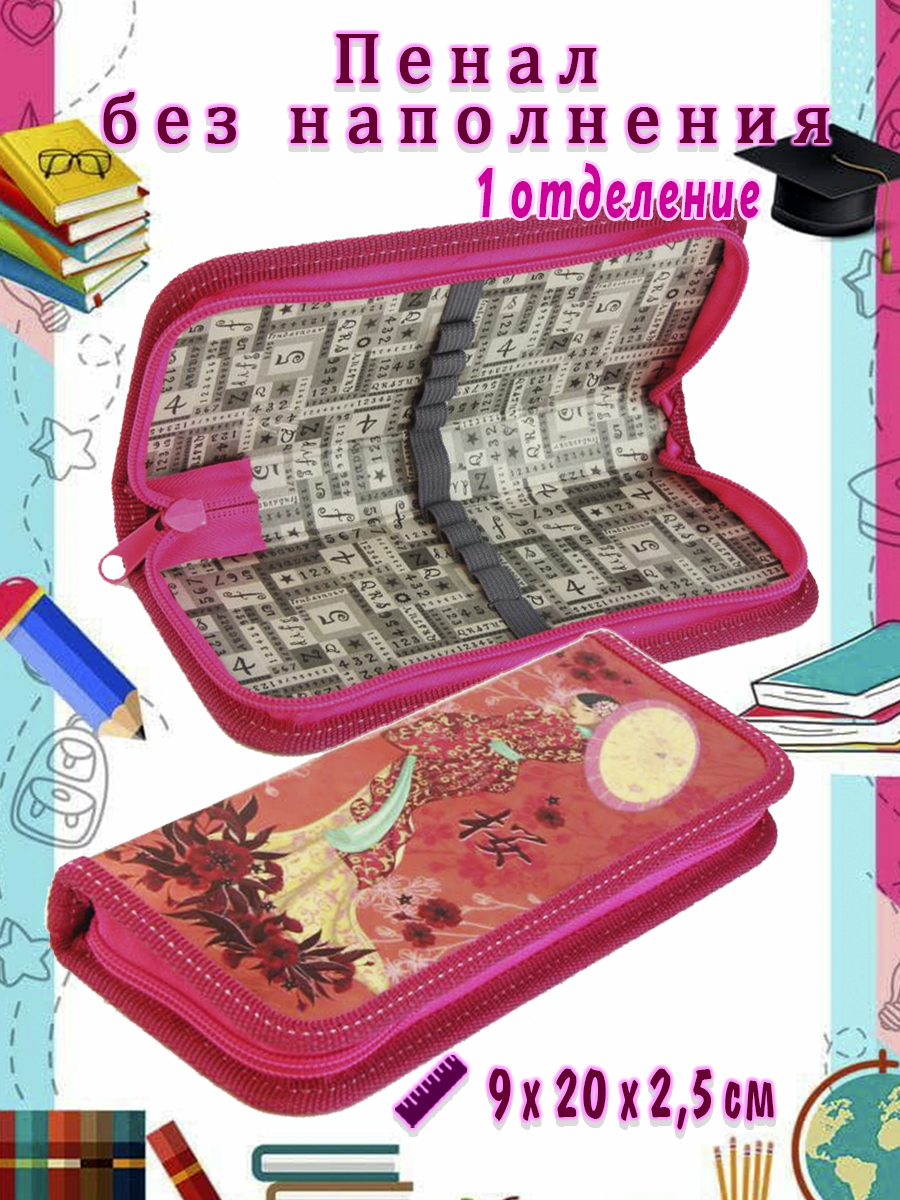 Пенал 1 отделение метал.объем 818085 Япония розовый, ткань, на молнии, цвет розовый
