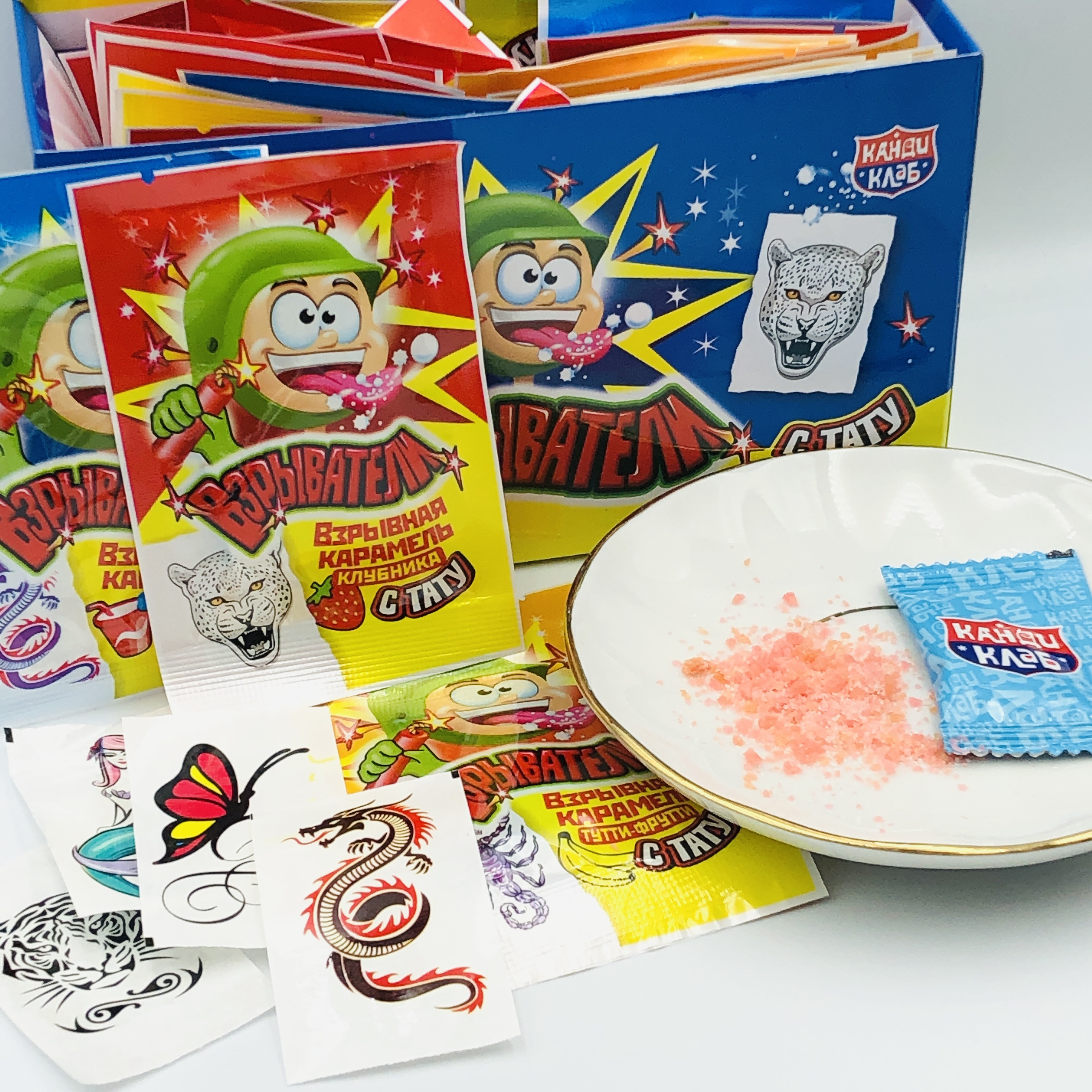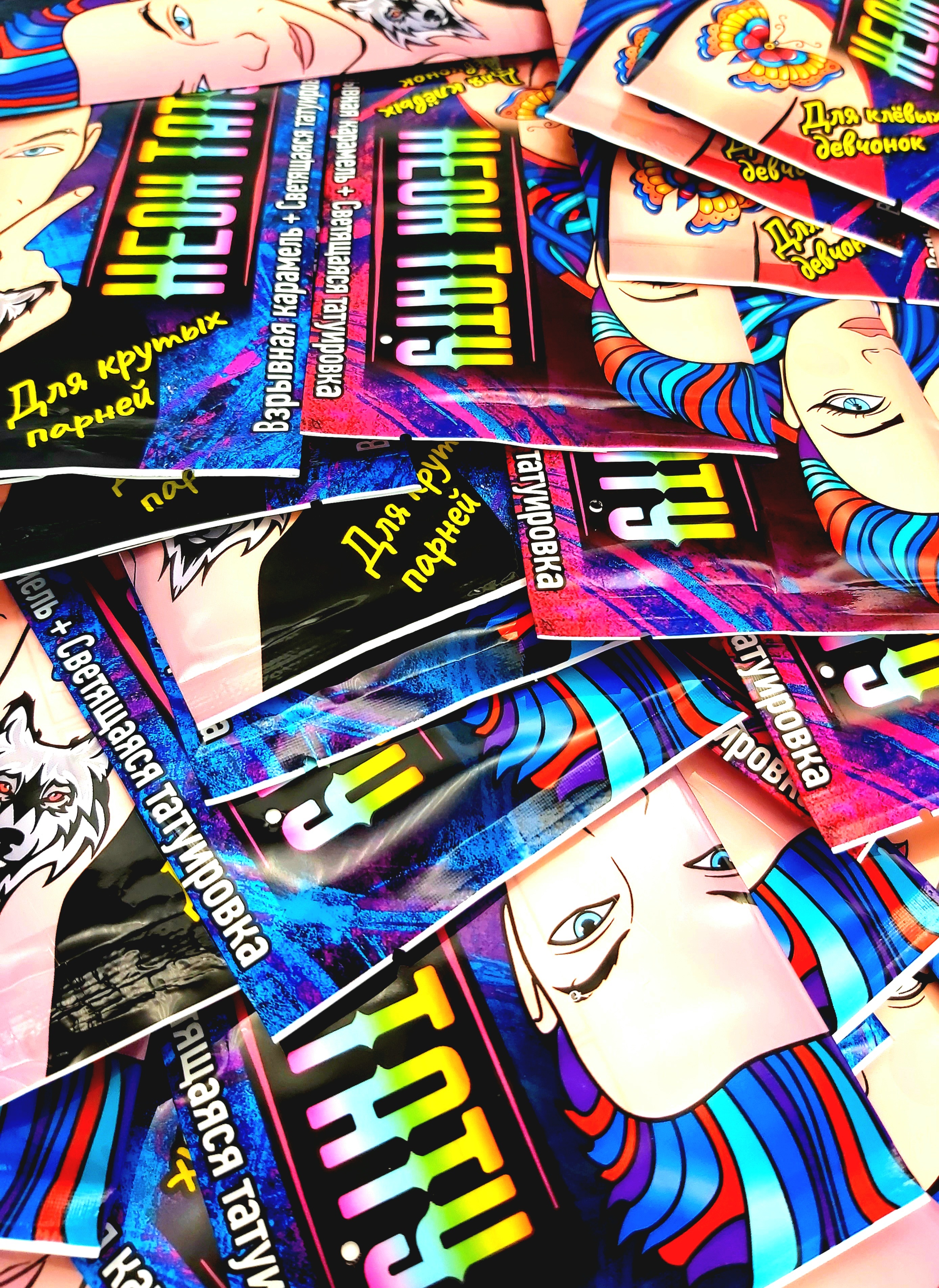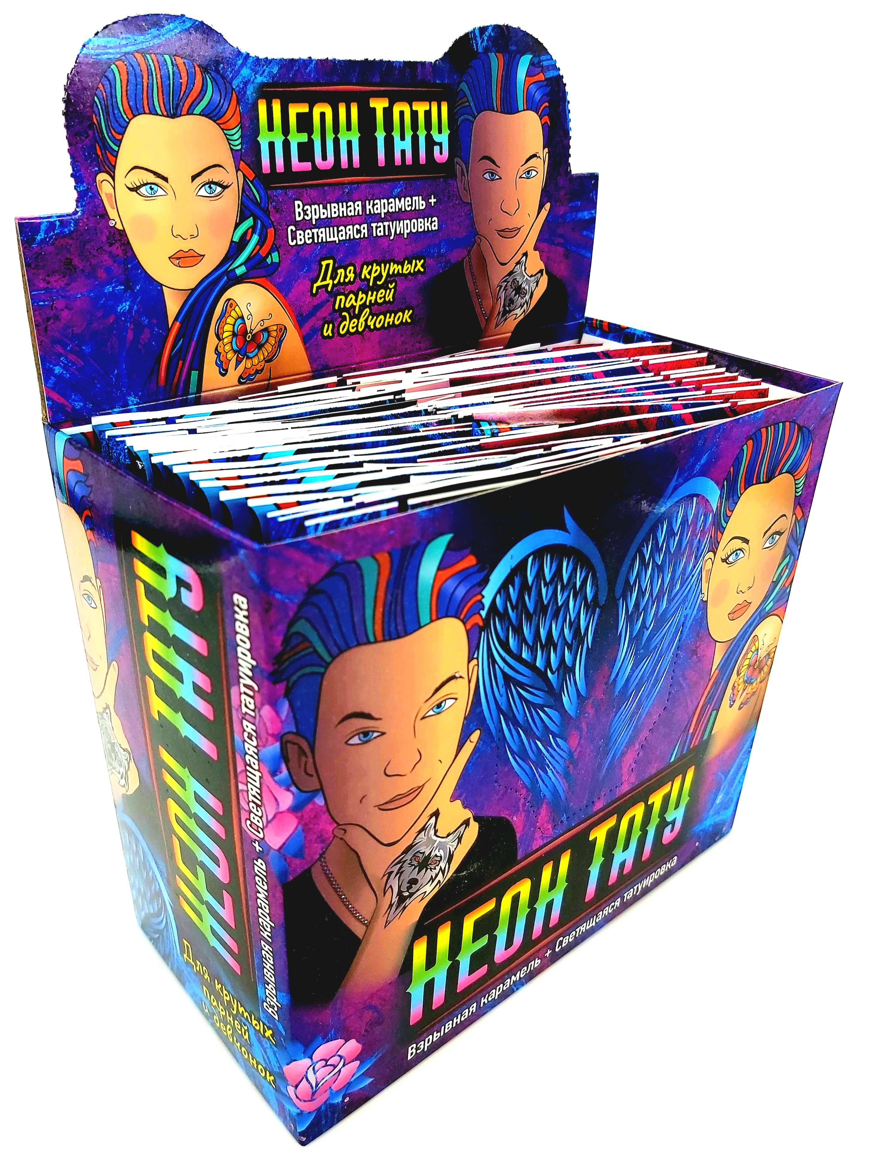 Карамель взрывная шипучка НЕОН ТАТУ светящаяся татуировка, хлопающая карамель блок /48, Канди Клаб