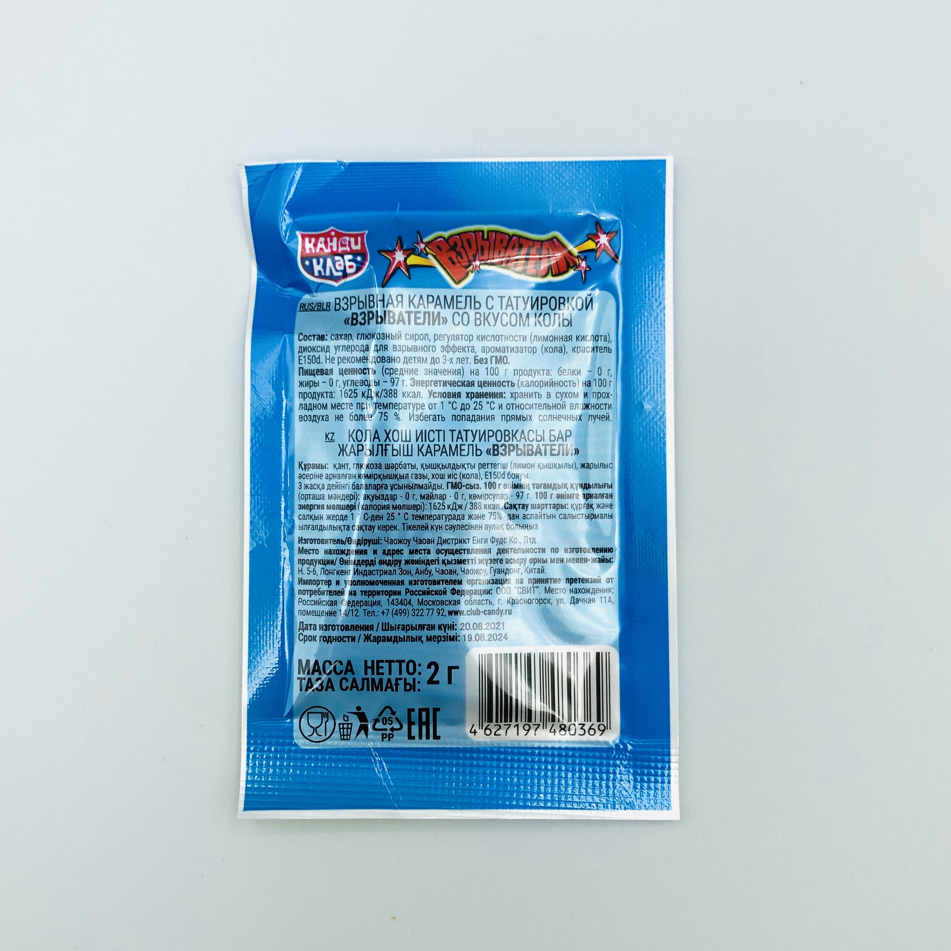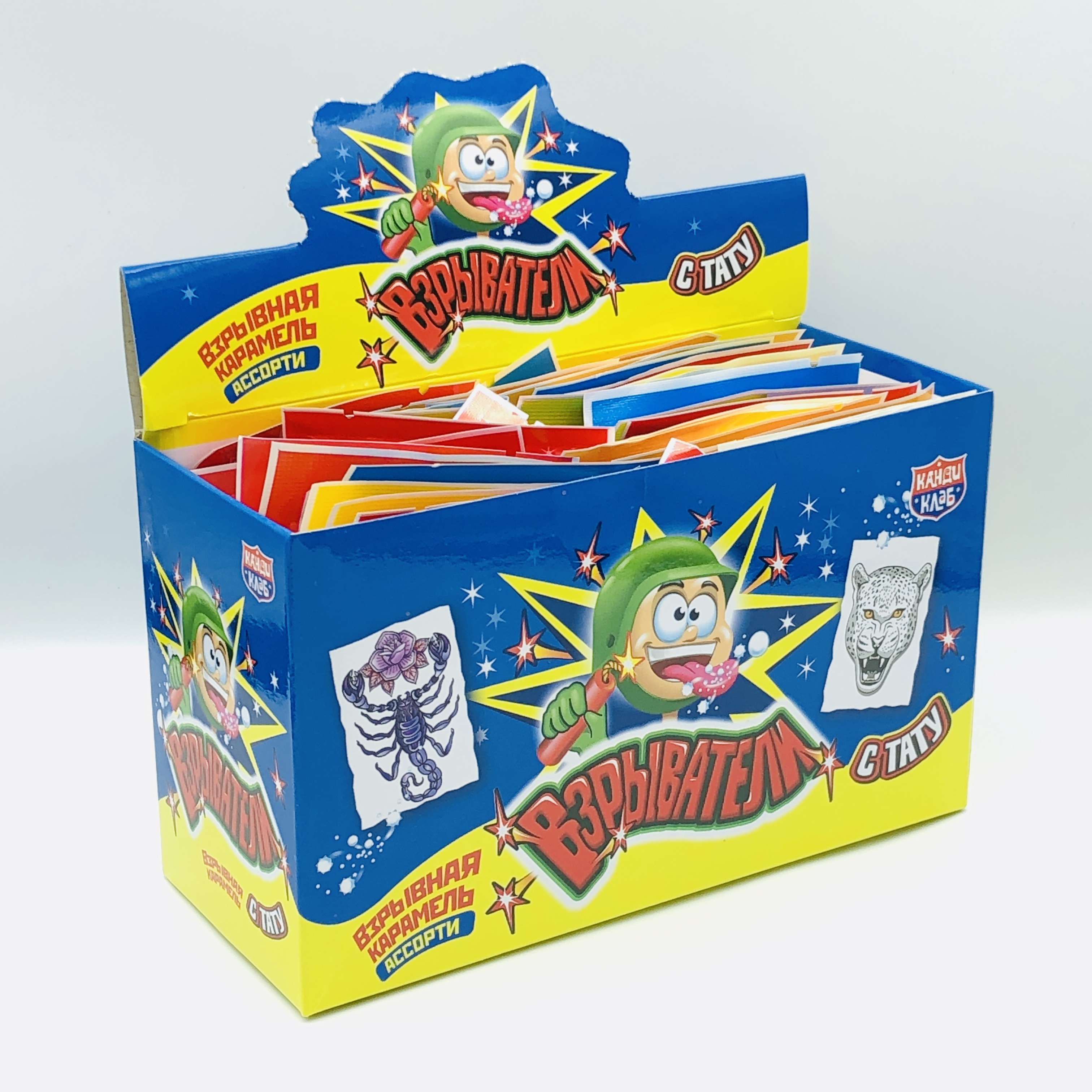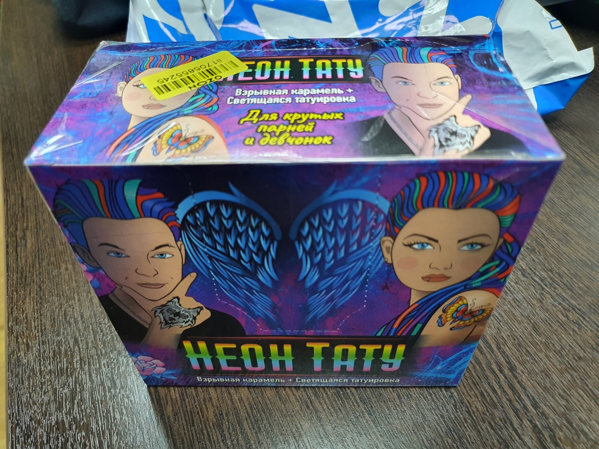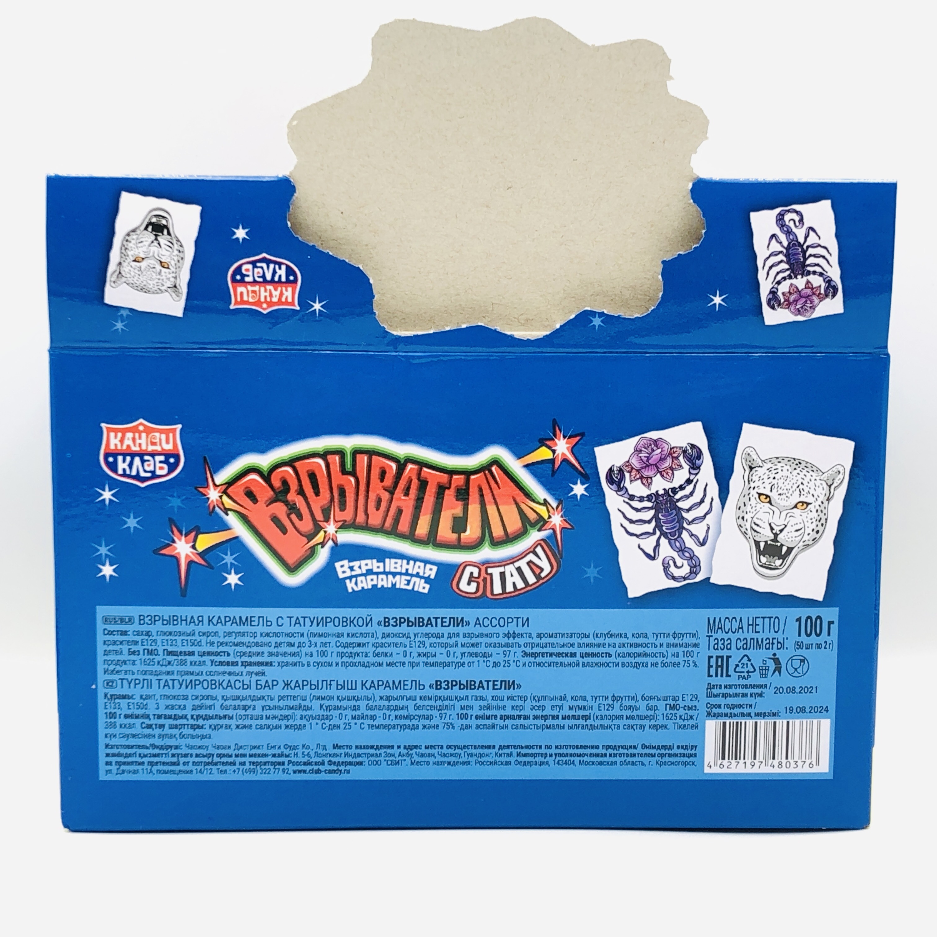 Карамель взрывная шипучка НЕОН ТАТУ светящаяся татуировка, хлопающая карамель блок /48, Канди Клаб
