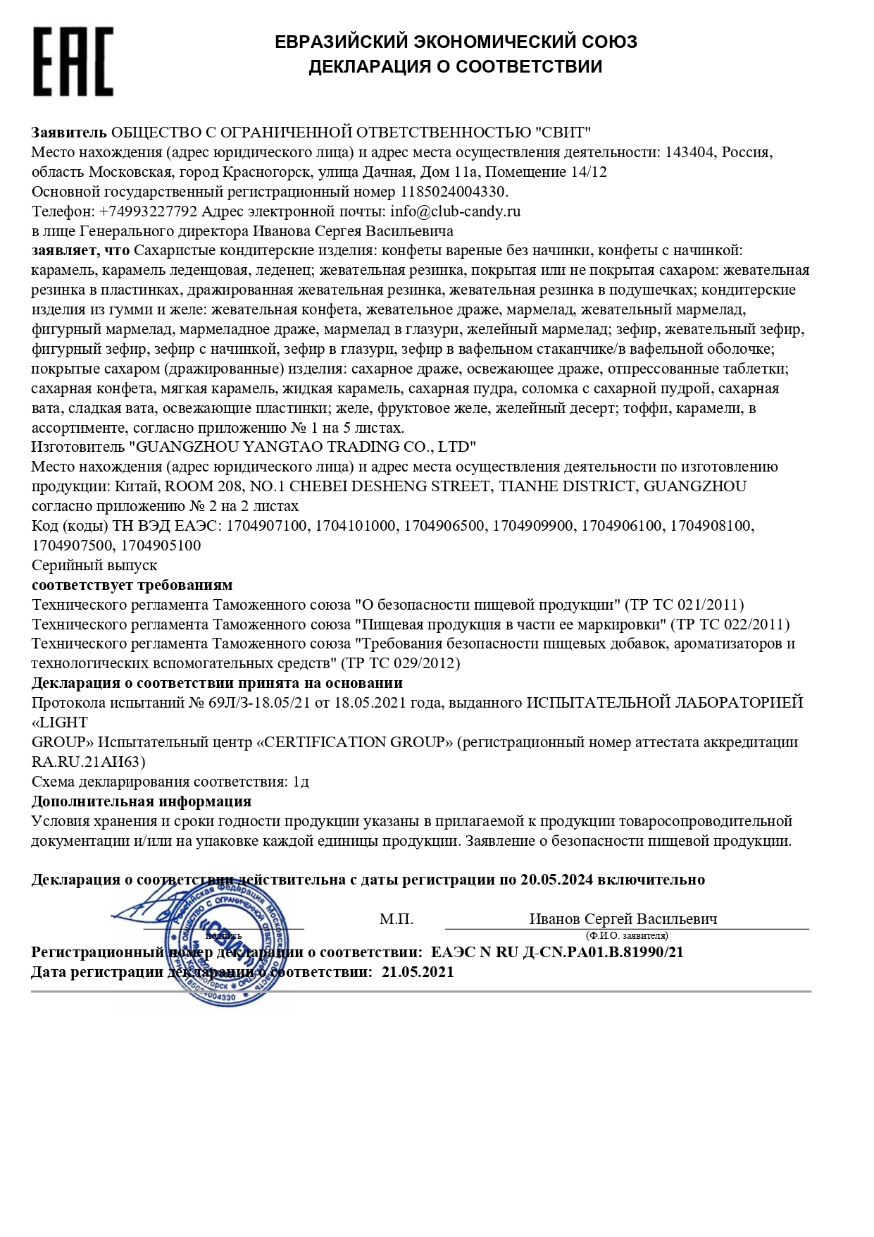 Жевательный мармелад Пугатели Части Тела (тутти-фрутти) блок / 75 шт, Канди Клаб