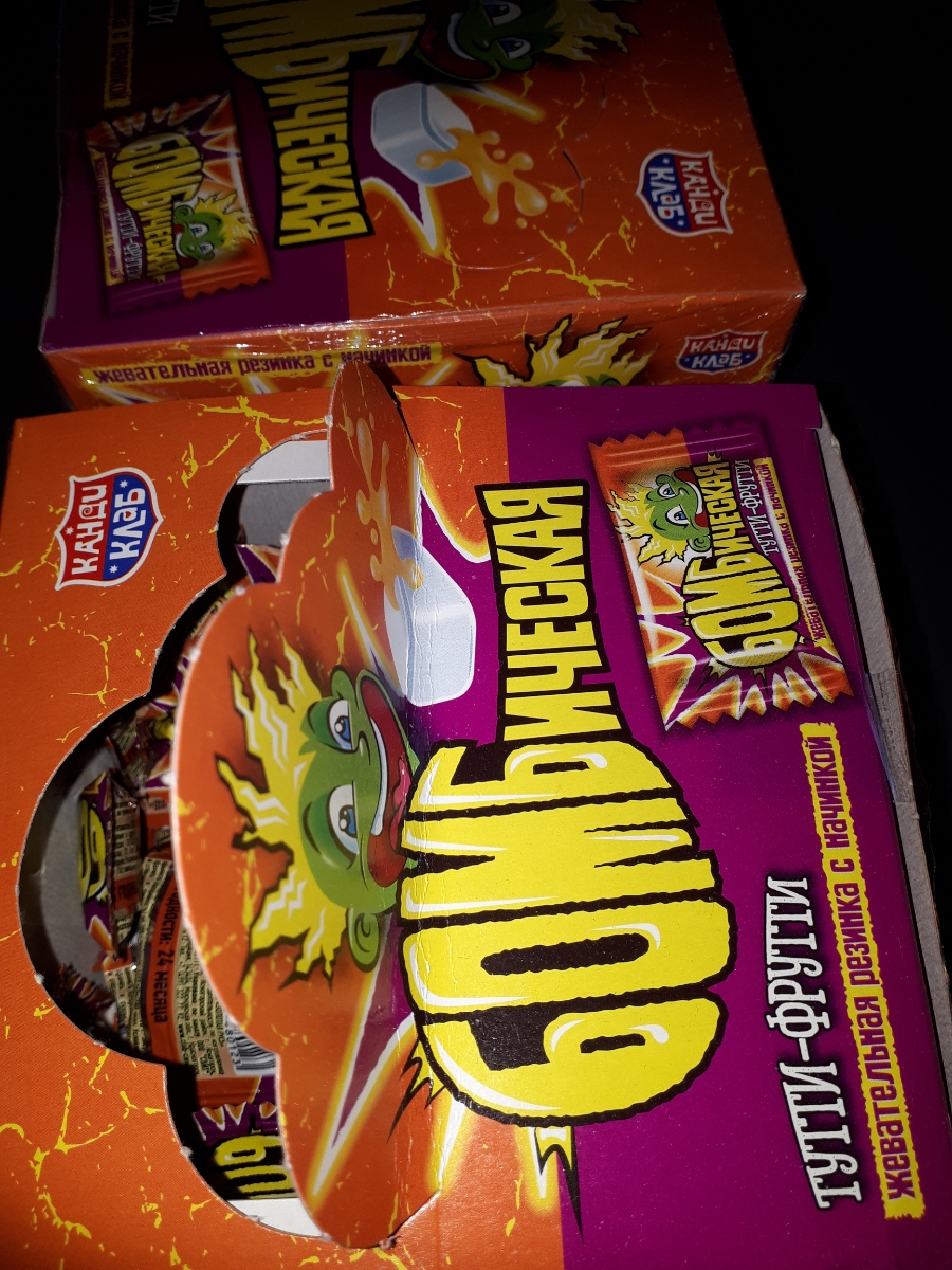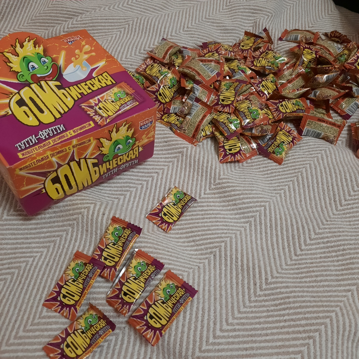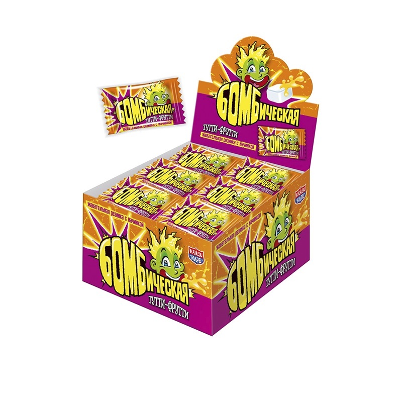 Жевательная резинка с начинкой "Бомбическая" со вкусом тутти-фрутти 100 шт по 4 гр