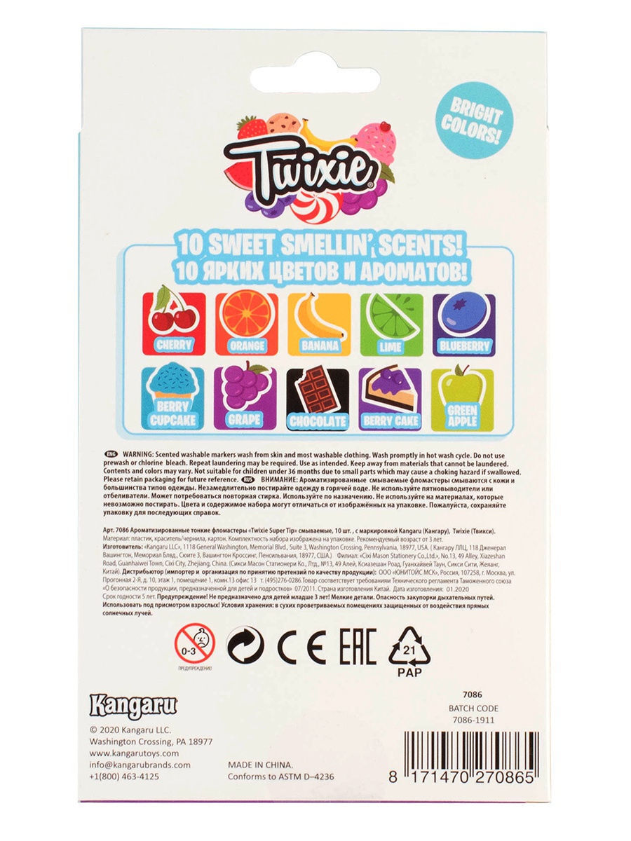 Ароматизированные тонкие фломастеры Twixie Super Tip смываемые (10 шт.), 7086