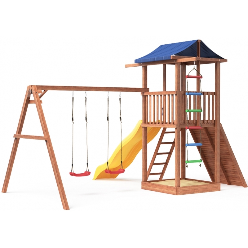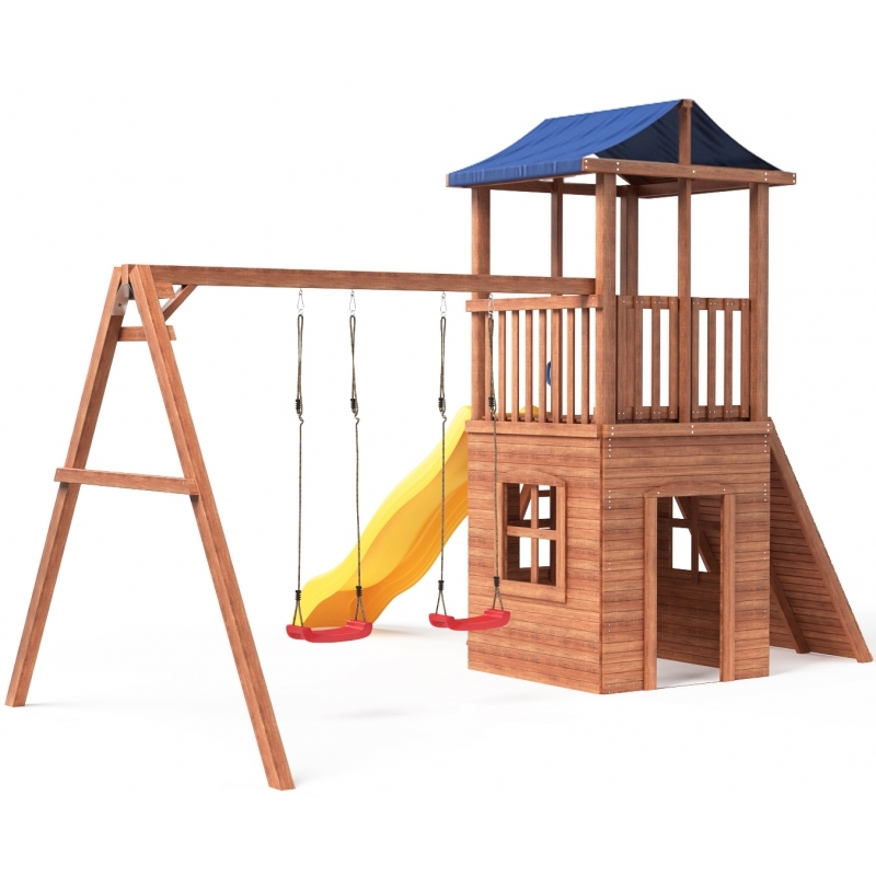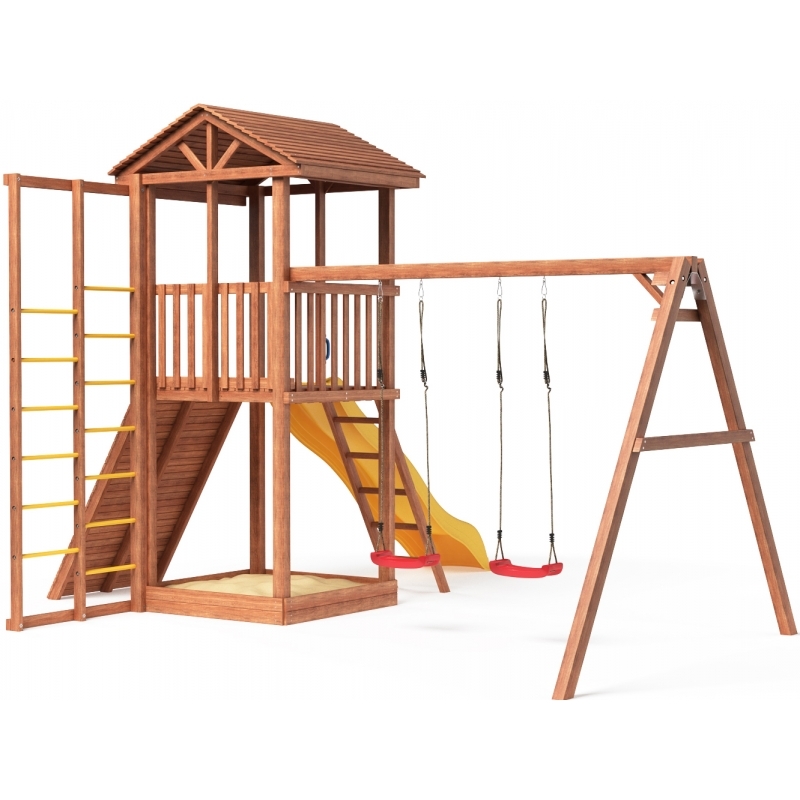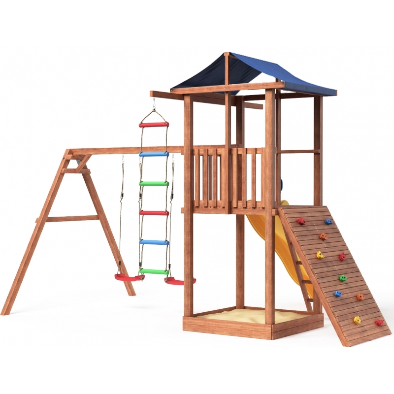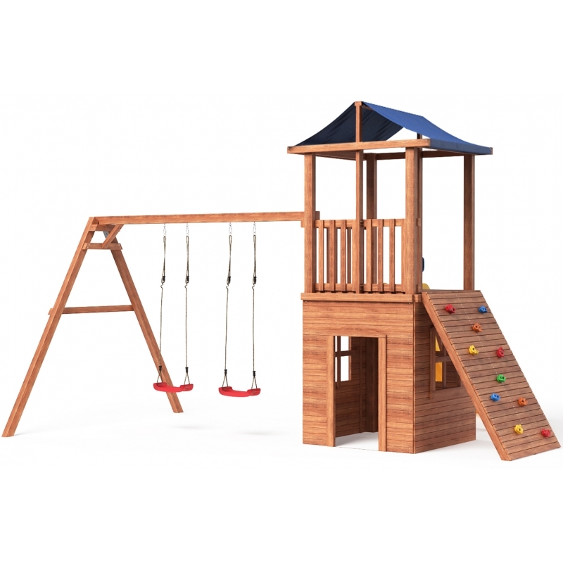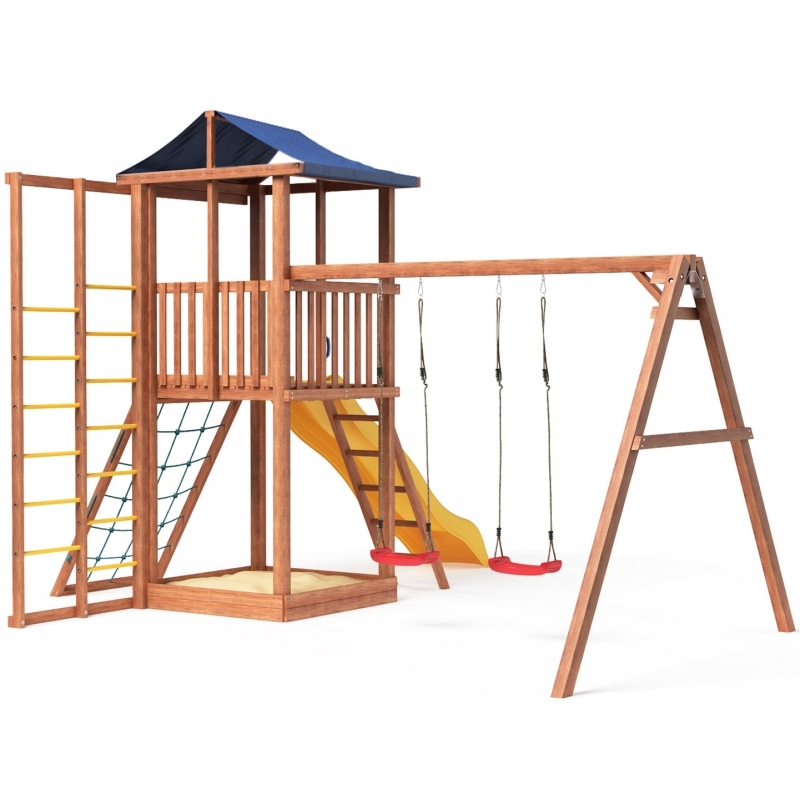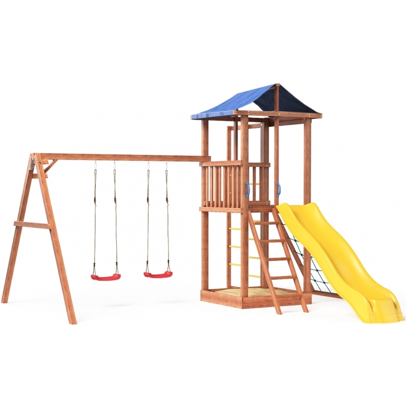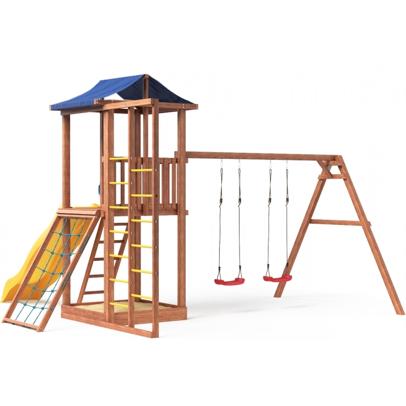 Игровой комплекс С качелями и сеткой для лазания крыша тент