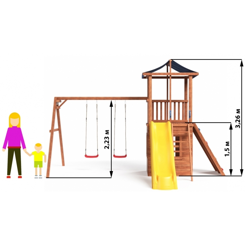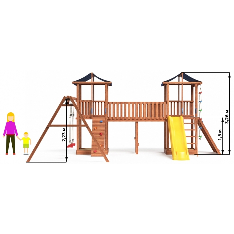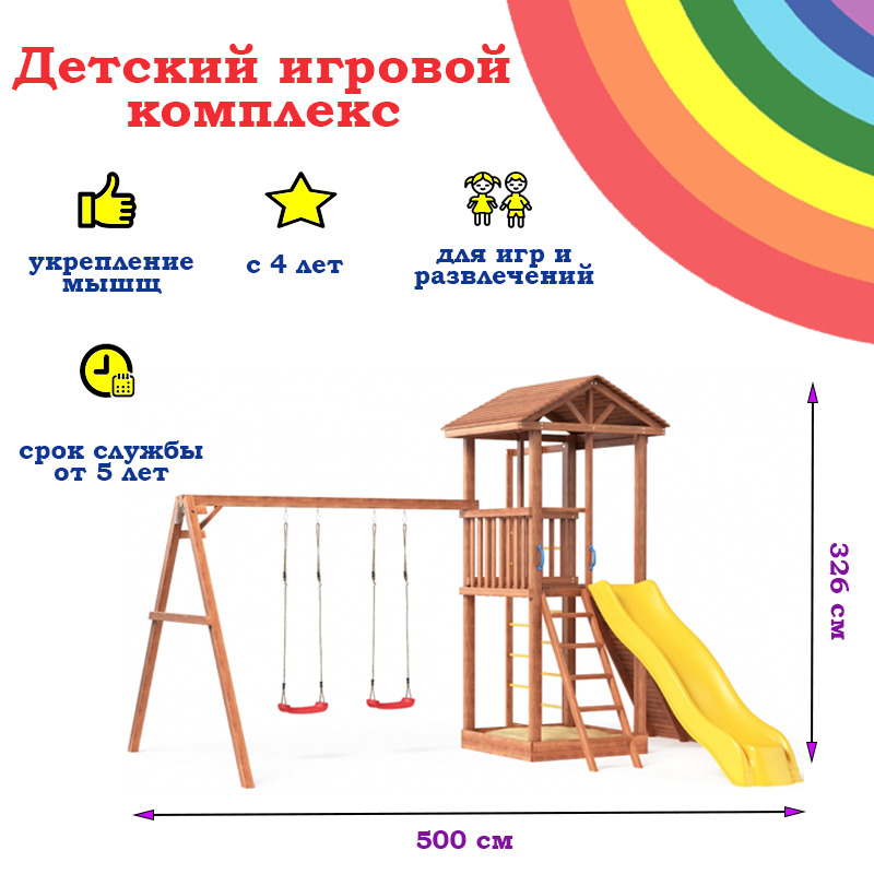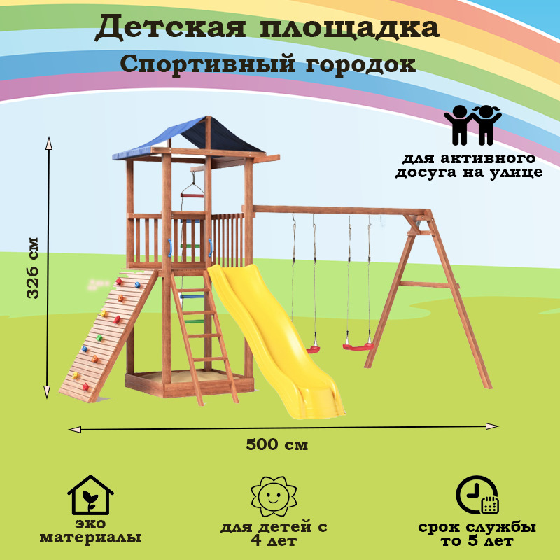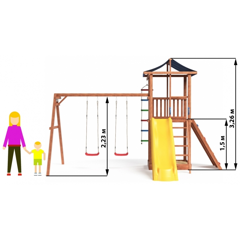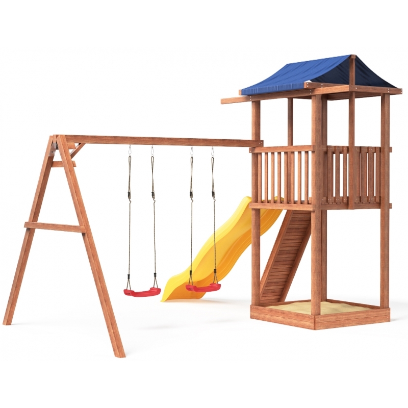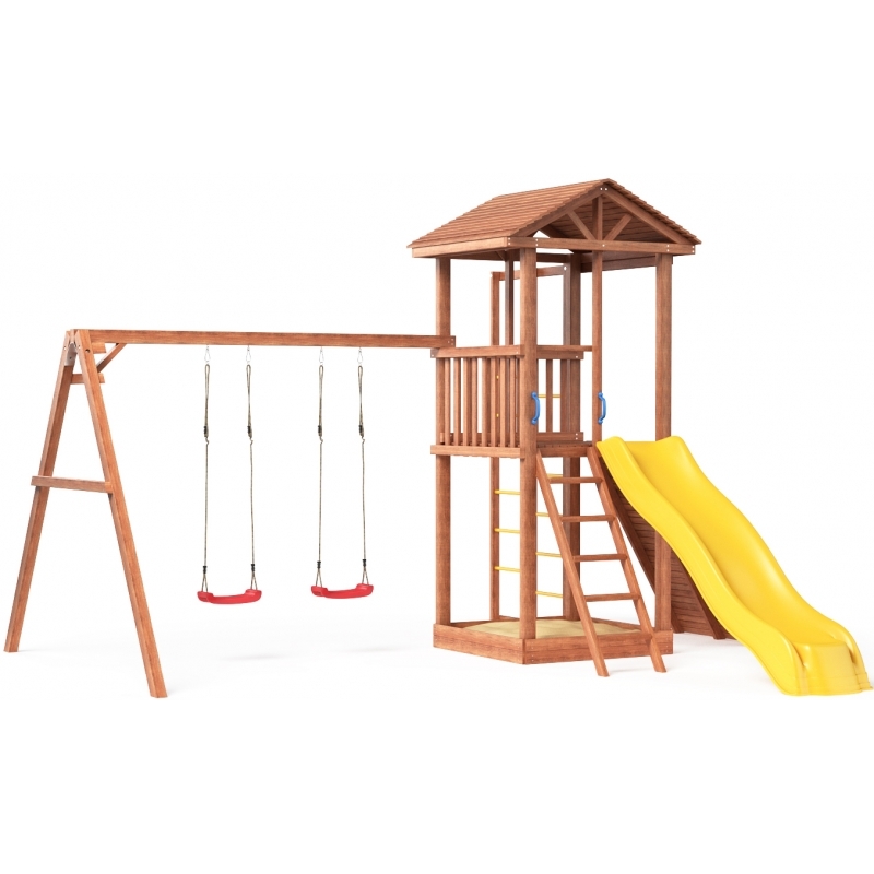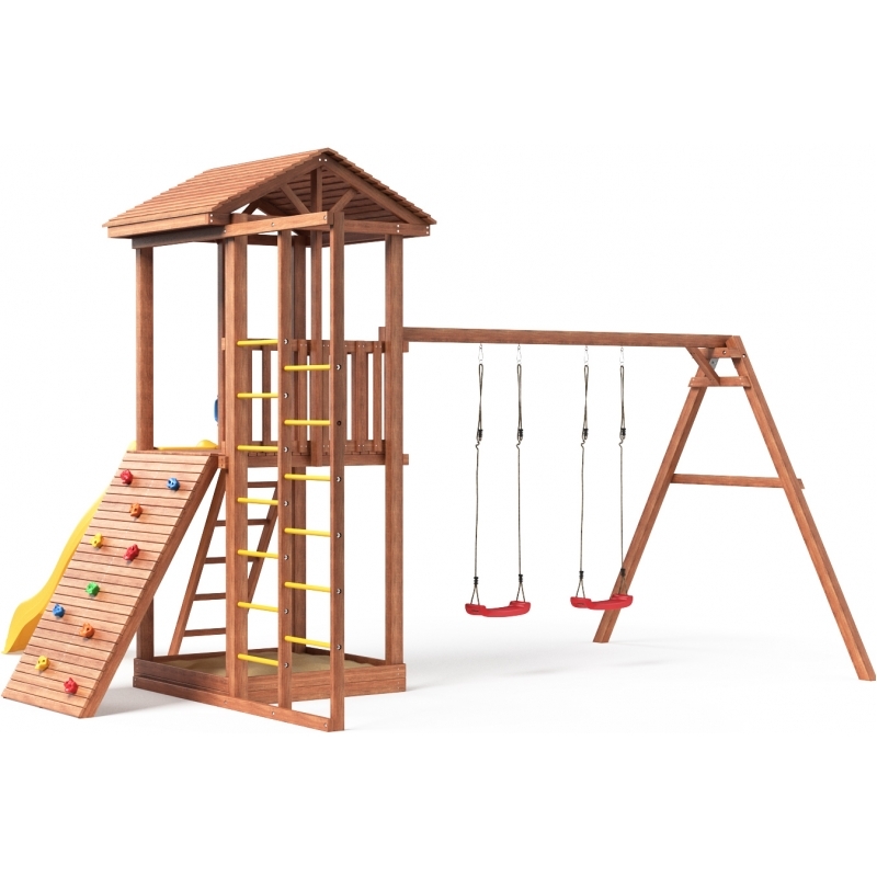 Игровой комплекс С качелями и сеткой для лазания крыша тент