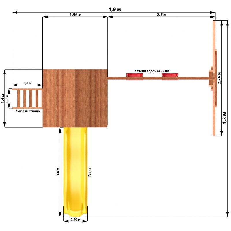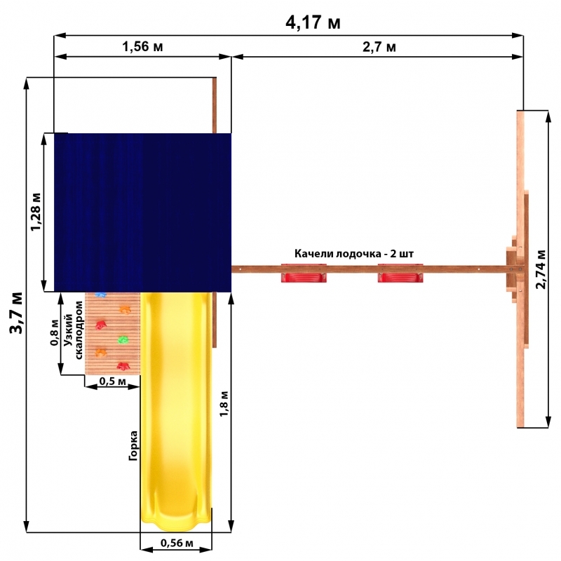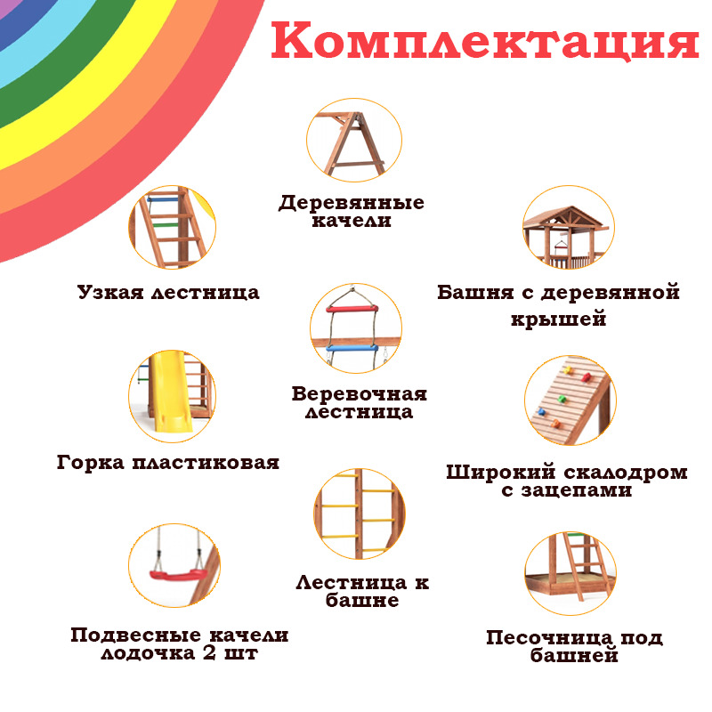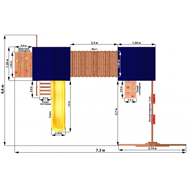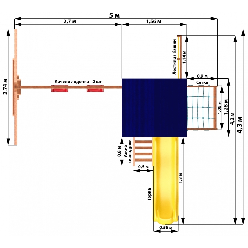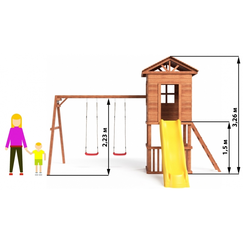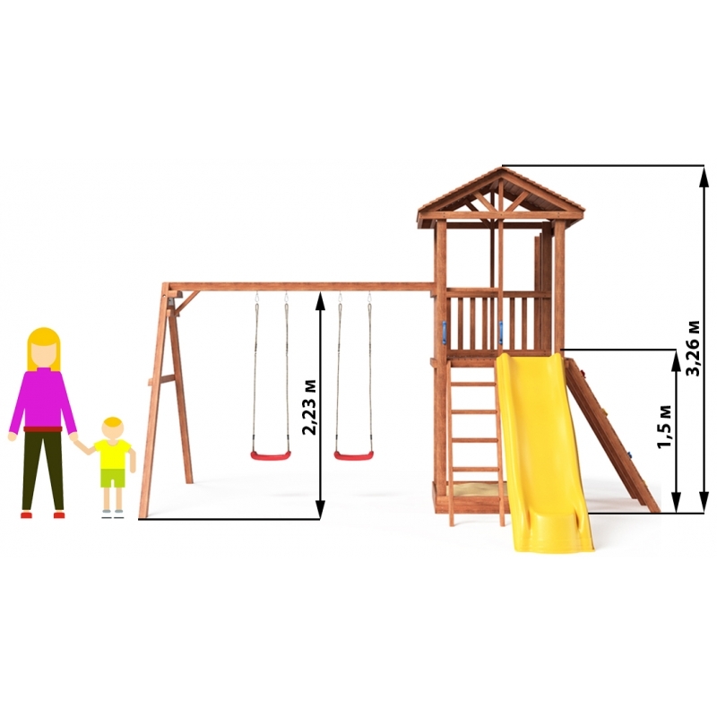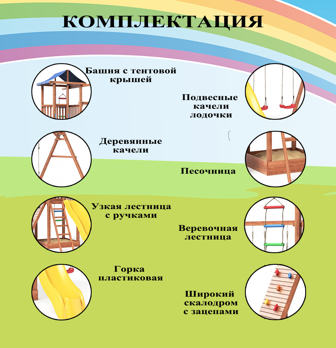 Игровой комплекс С качелями и сеткой для лазания крыша тент