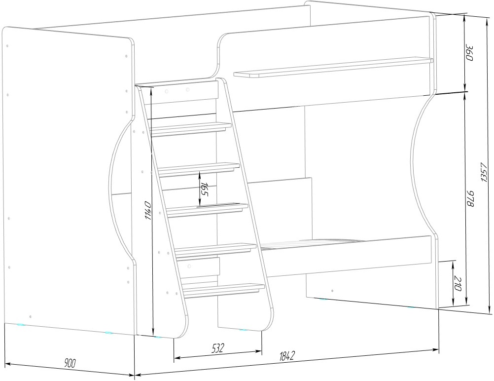 Двухъярусная кровать Капризун 8, 184х138х135 см