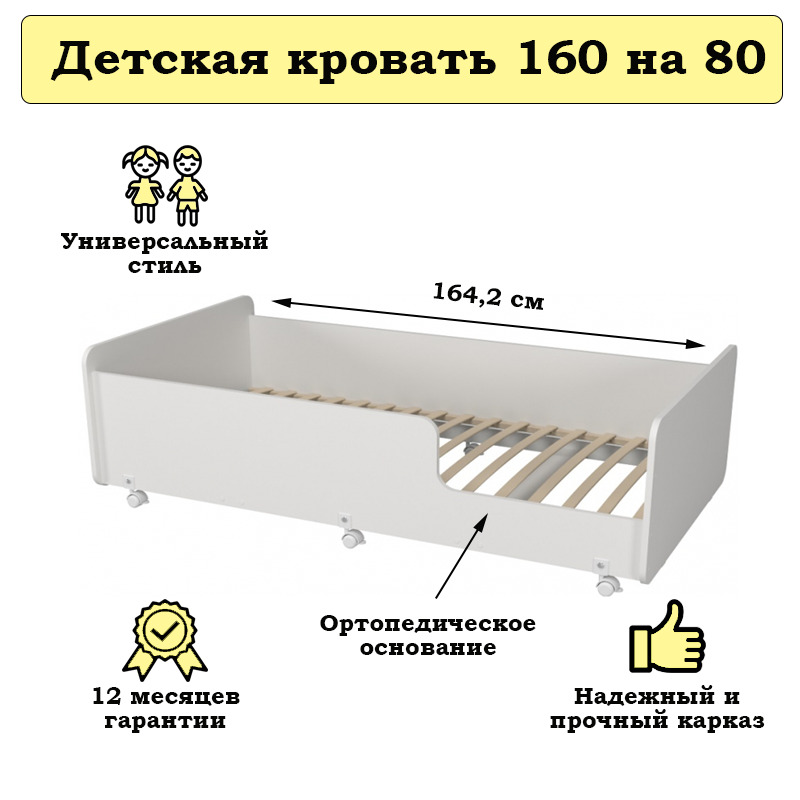 Кровать детская 88х164х50 см, Капризун 4-белый