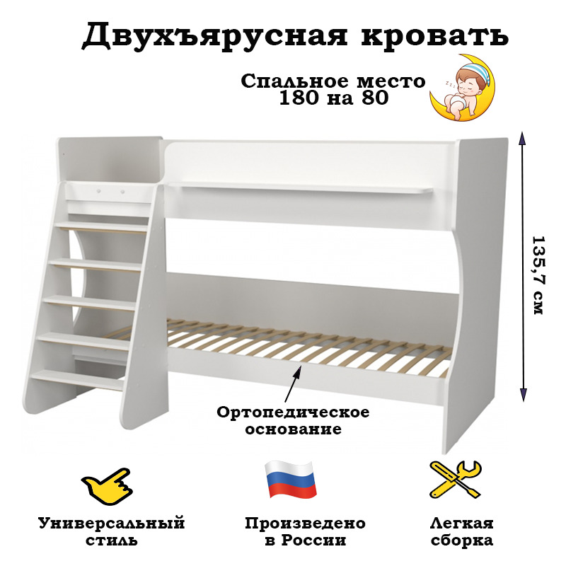 Двухъярусная кровать Капризун 6 белый, 226х84х167 см